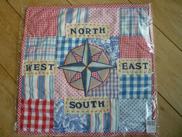 This Room Seven cushion depicts a compas with the four directions: North East South West