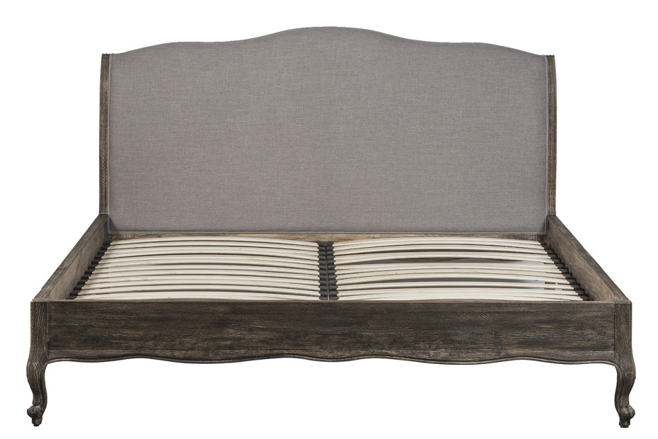 LOUIS XV bed is a Bed Rustic style in oak burned grey with grey linen headboard