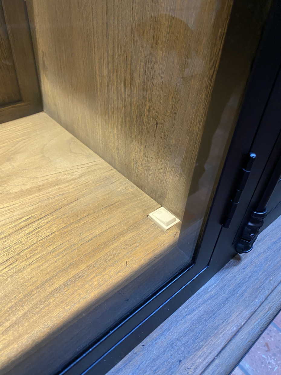 Display case color: old black combined with natural teak wood