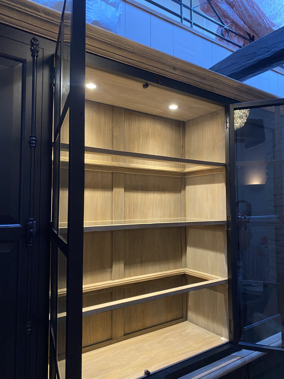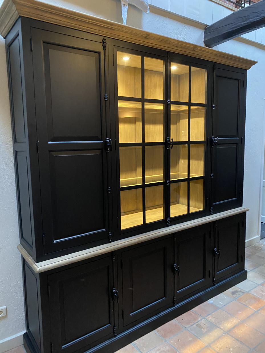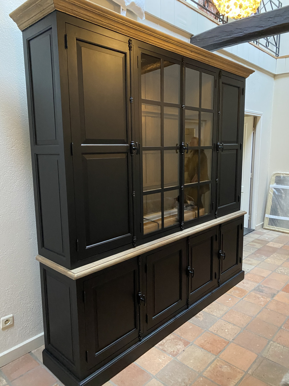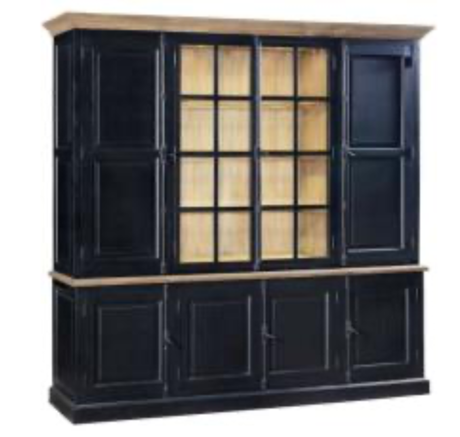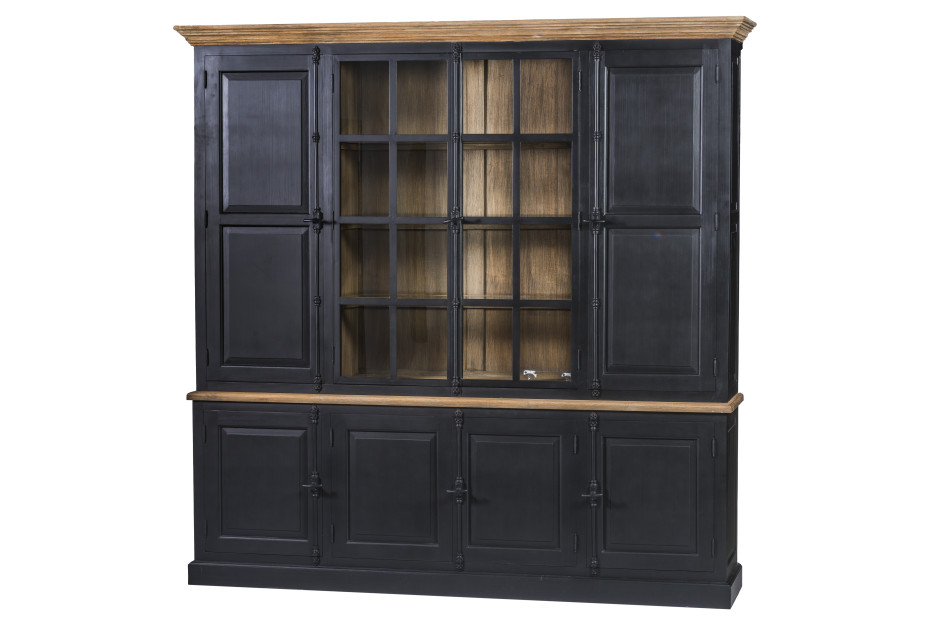 Country style black display cabinet with dimensions L232xW47x230H CM