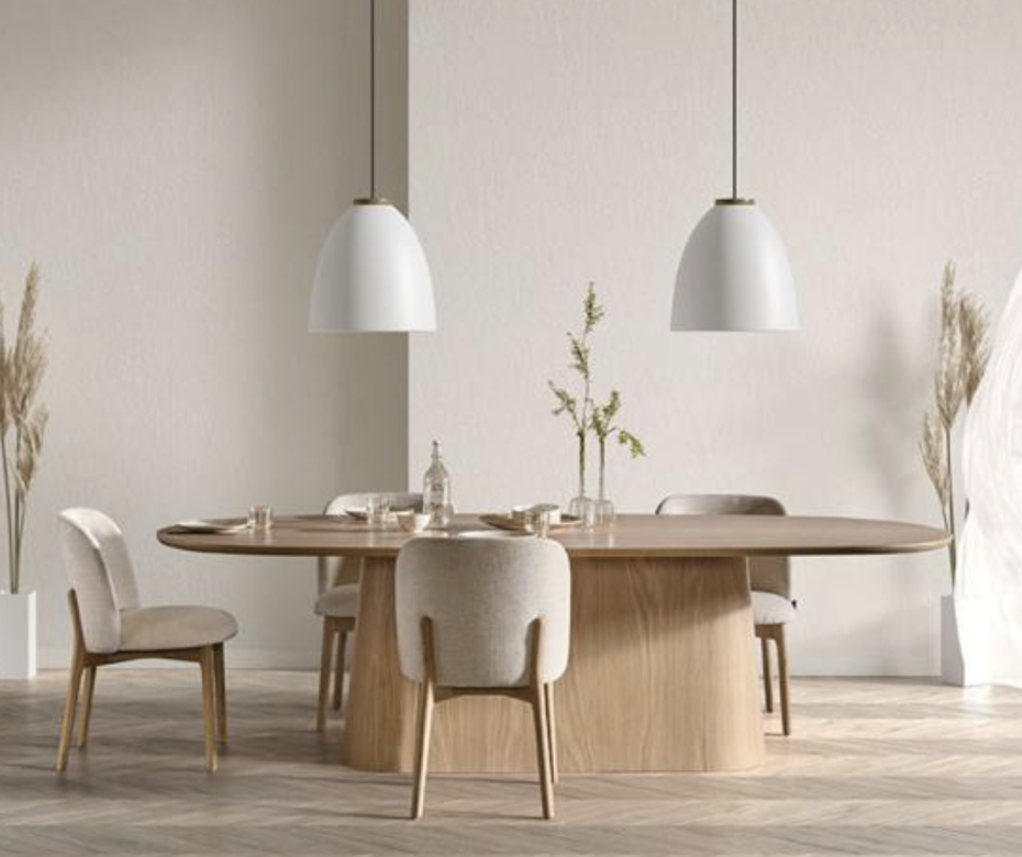 The Siro chairs from Castle Line are comfortable dining room chairs with round wooden chair legs and can be purchased according to your wishes, to choose the color of your seating and wooden legs