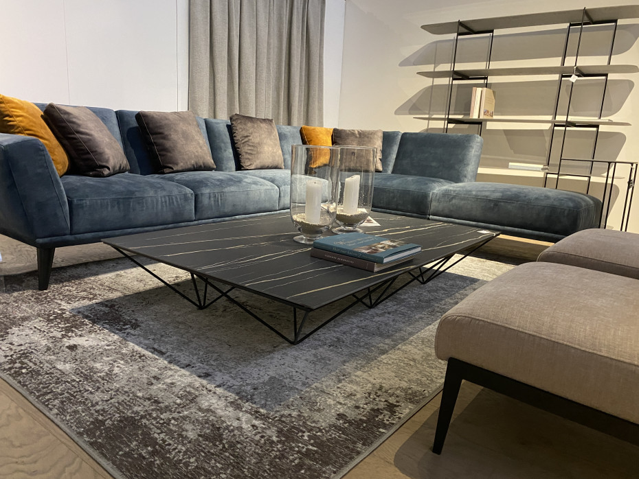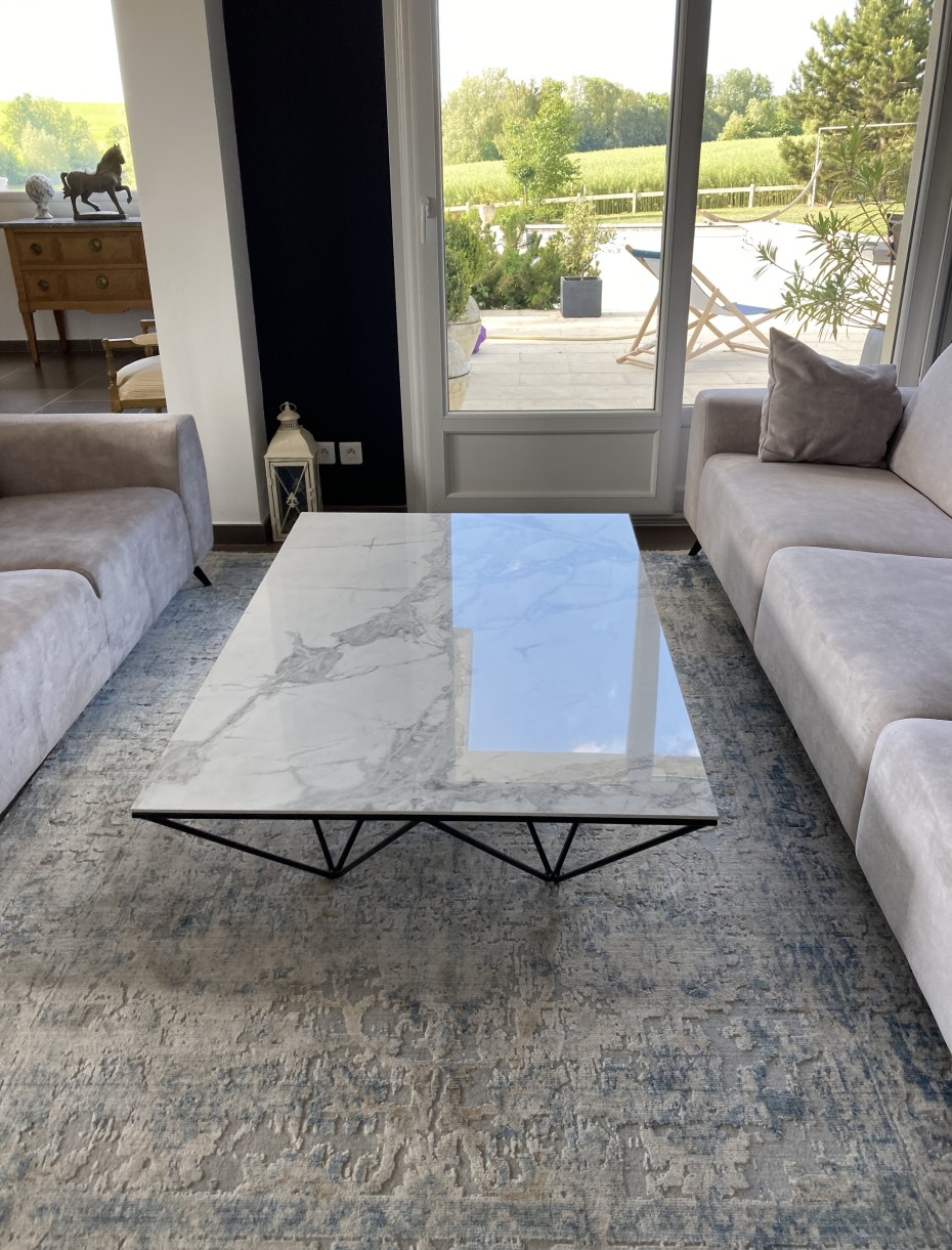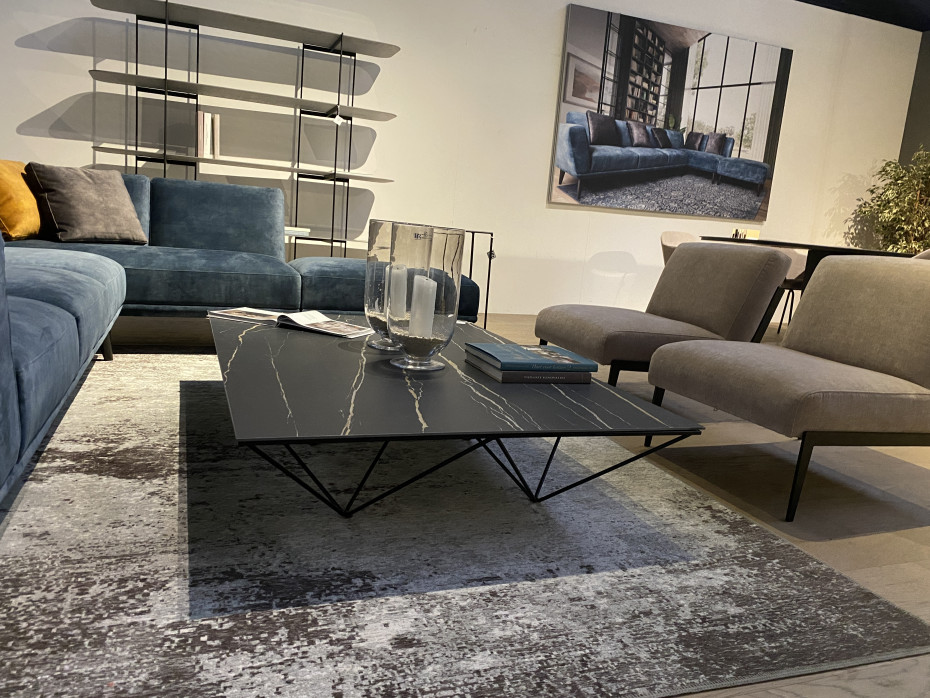 This modern Prisma coffee table can also be ordered with an oak wooden table top (€ 1.136) or ceramic marble look table top (€ 1.312), see photo stone carrara glossy