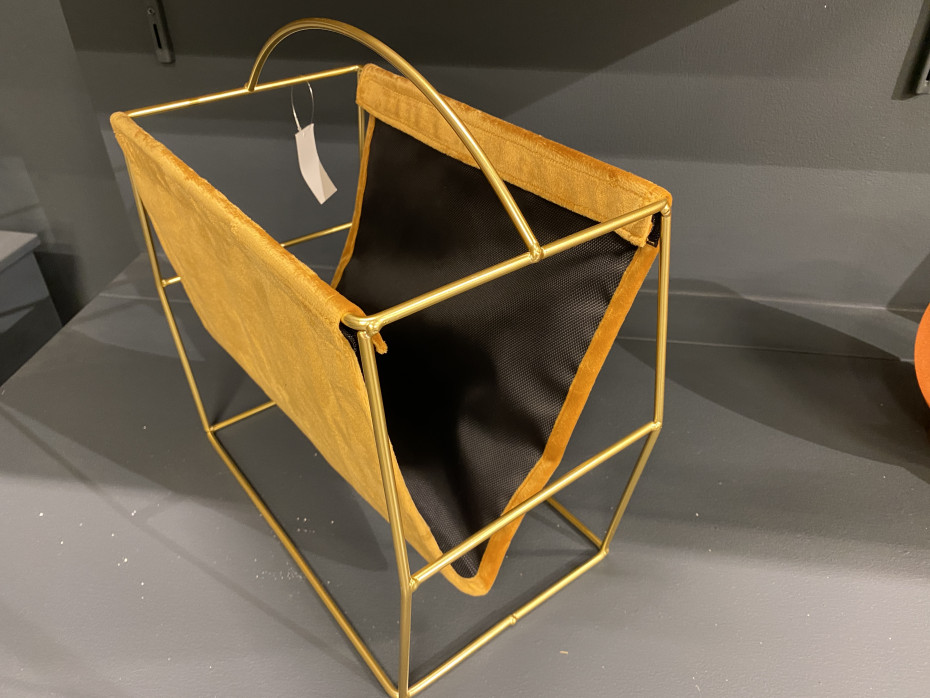 The magazine rack is made of gold metal and is from the Belgian brand Cosy & Trendy