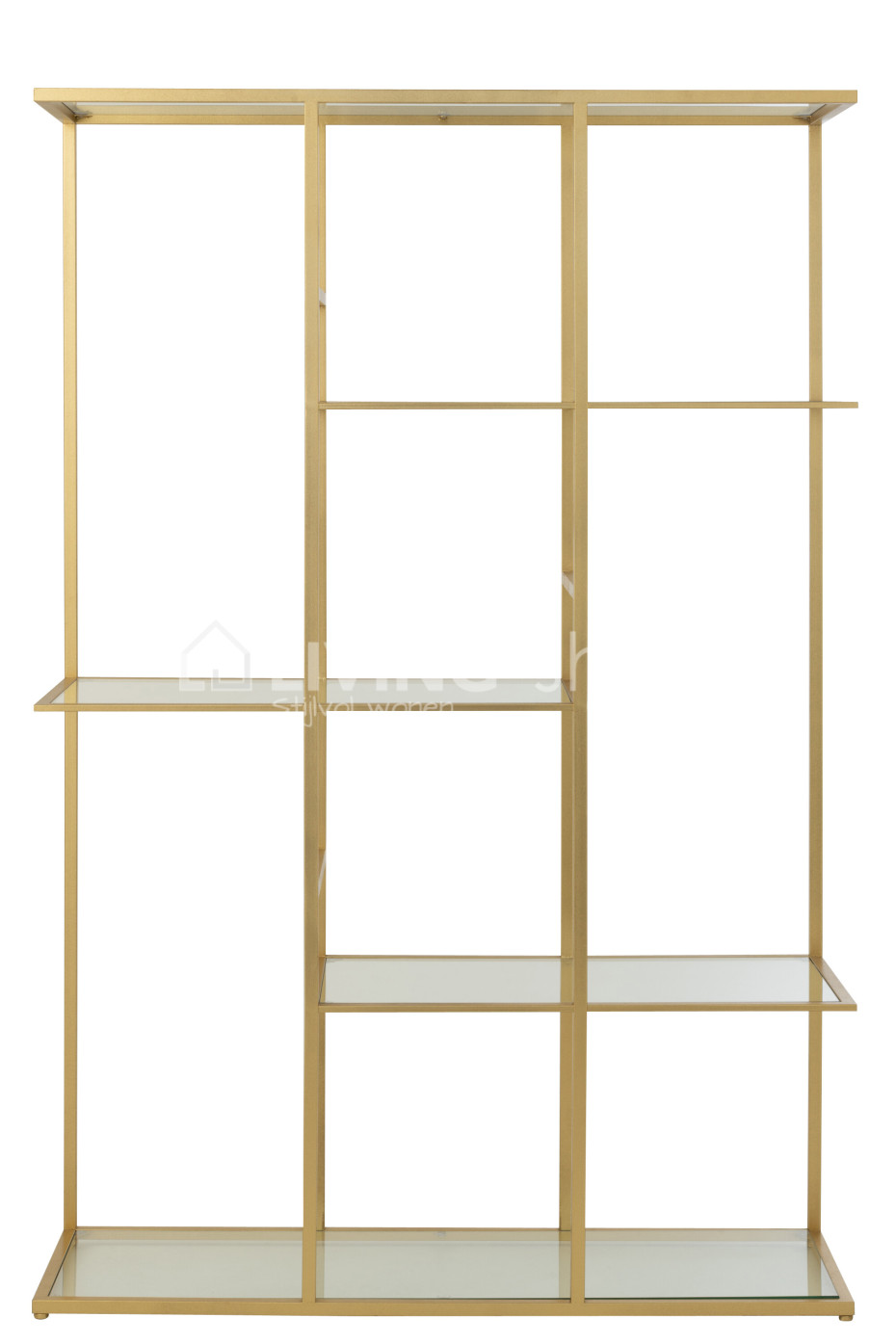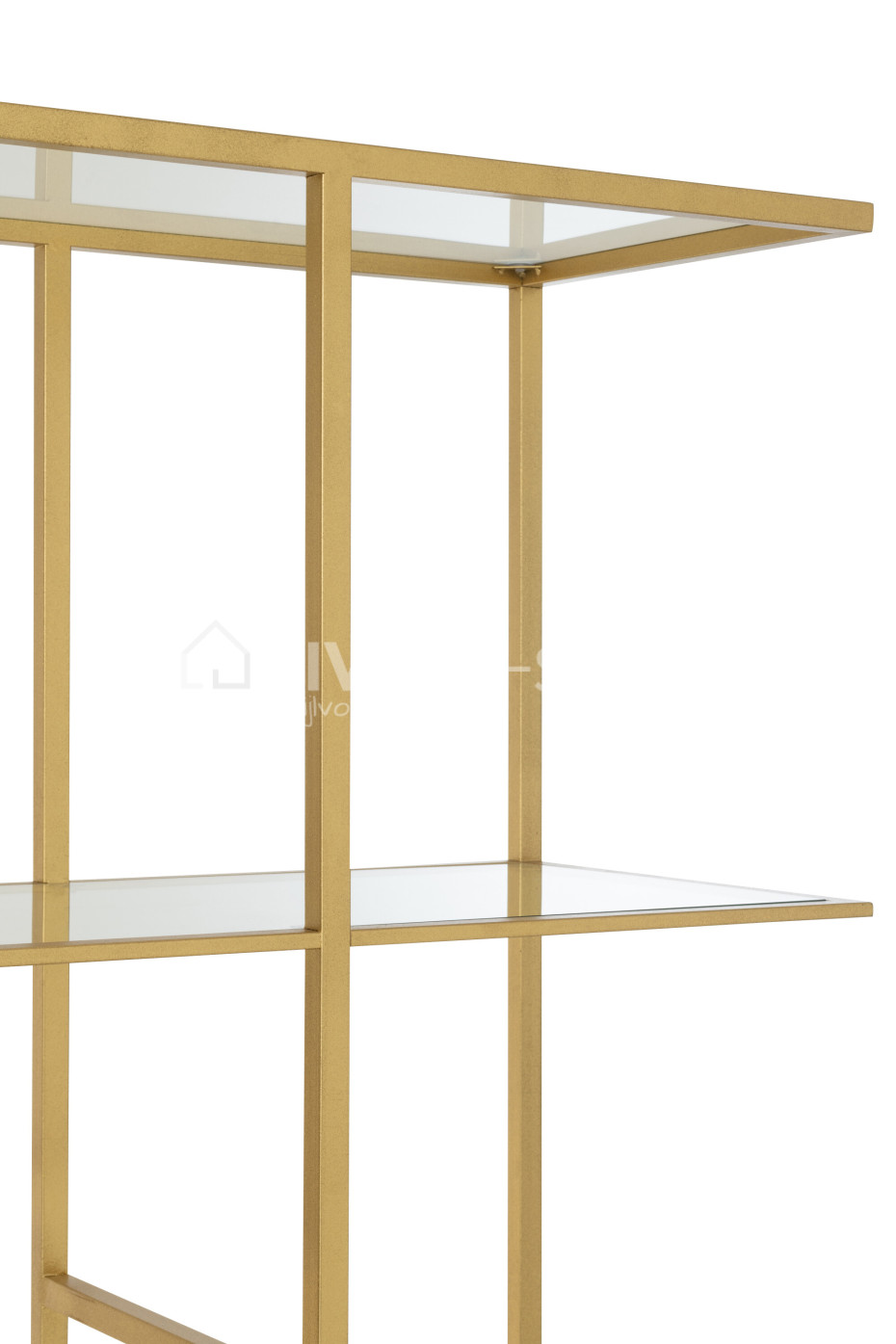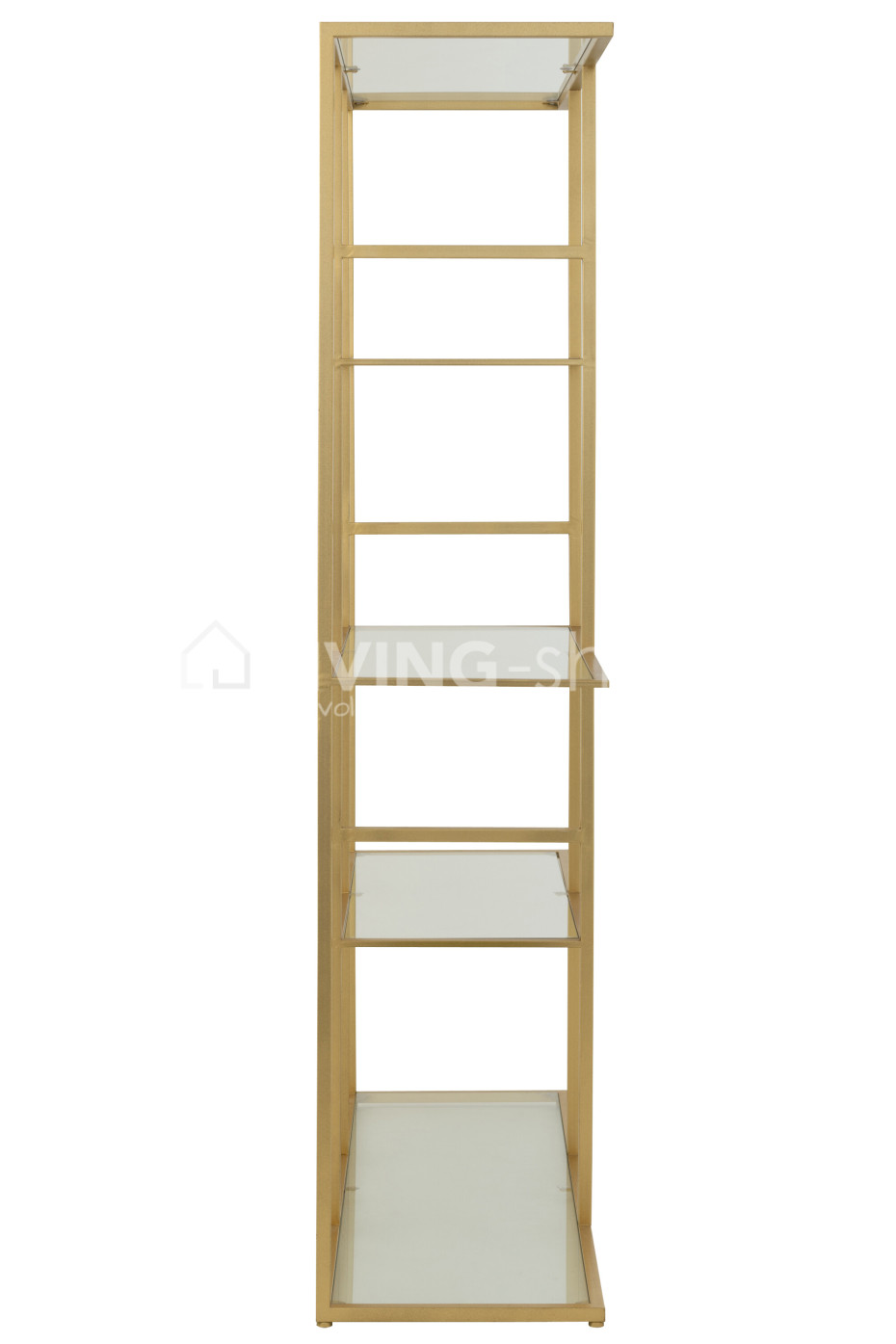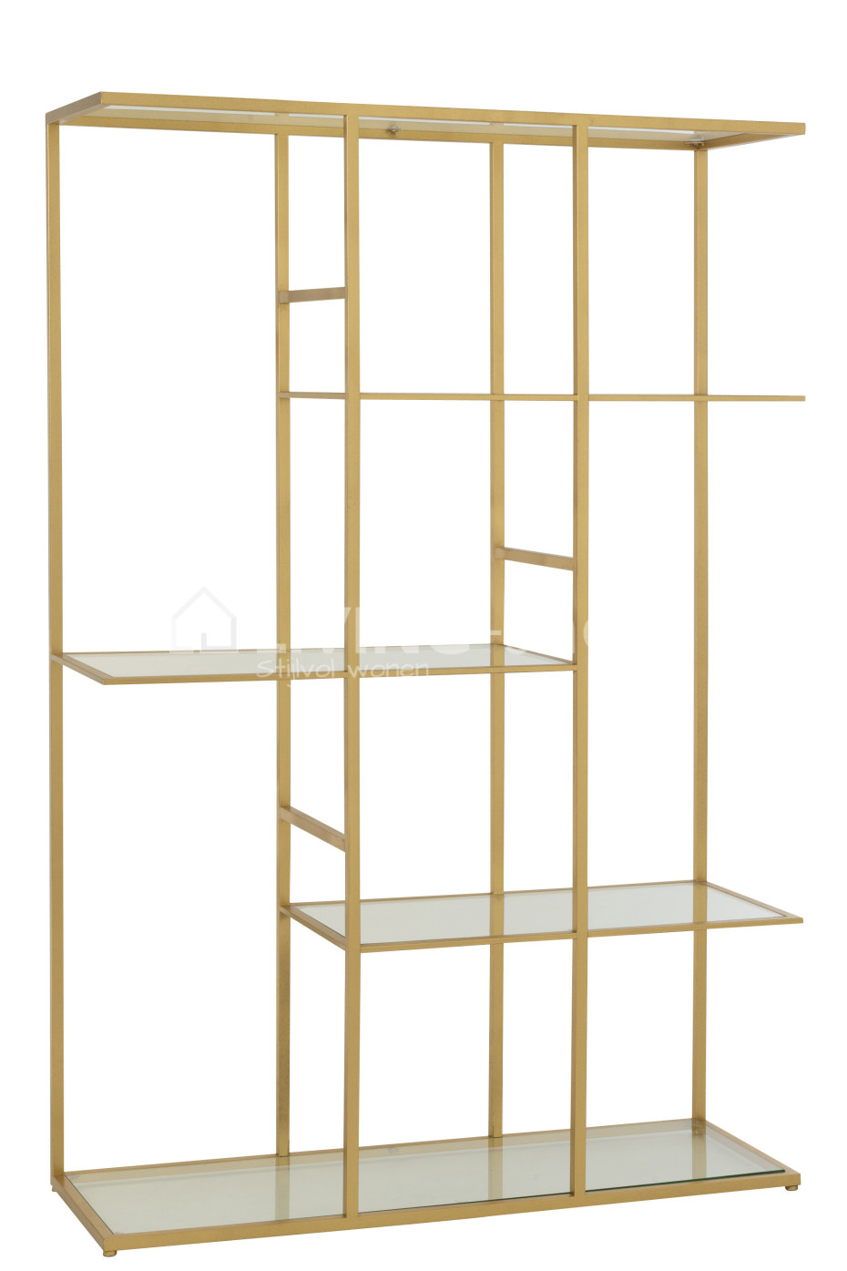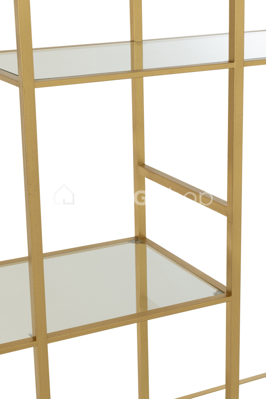 The wall rack is made of gold wrought iron with glass shelves and finished with fine profiles.