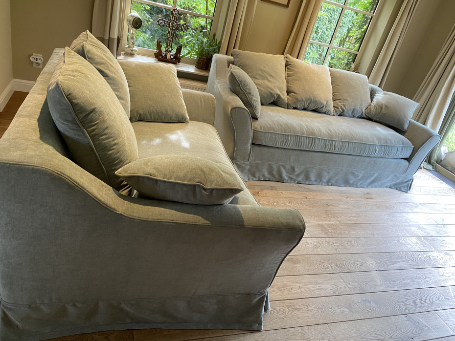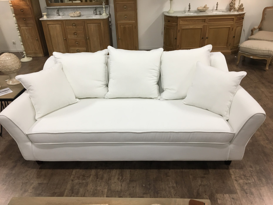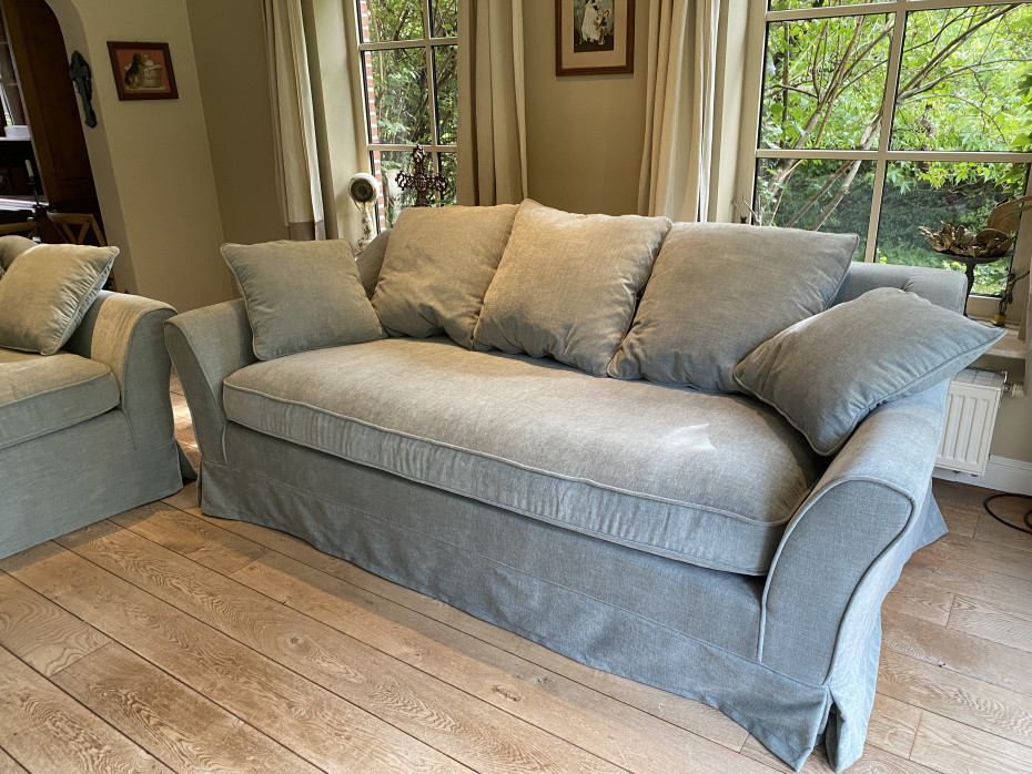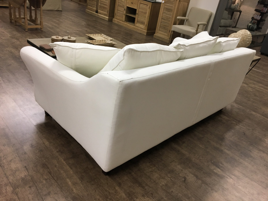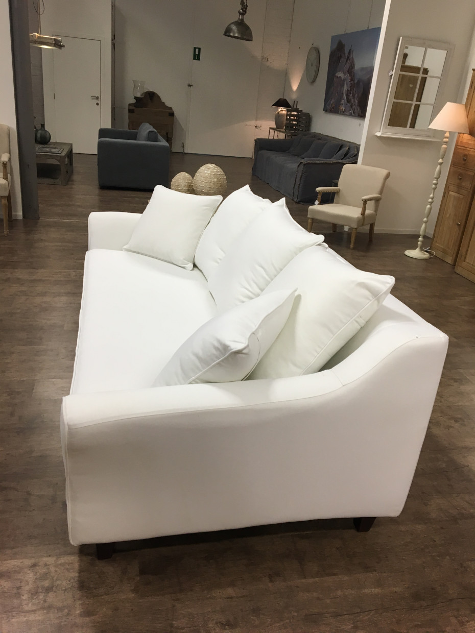 You can choose the rural Emma sofa with fixed or removable seat covers (with extra charge) and with foam filling (included) or foam and feather filling for the seat cushions (extra charge).