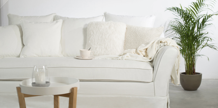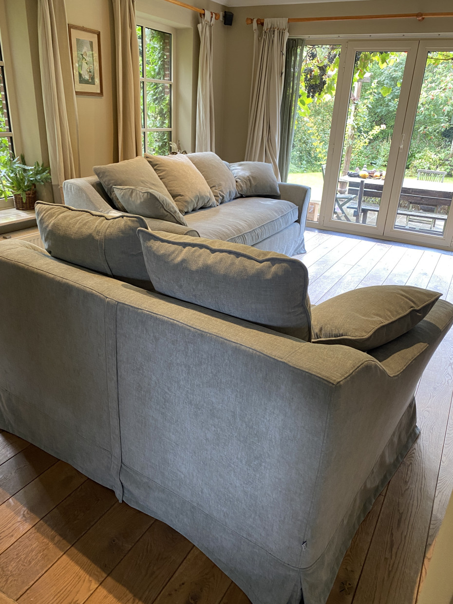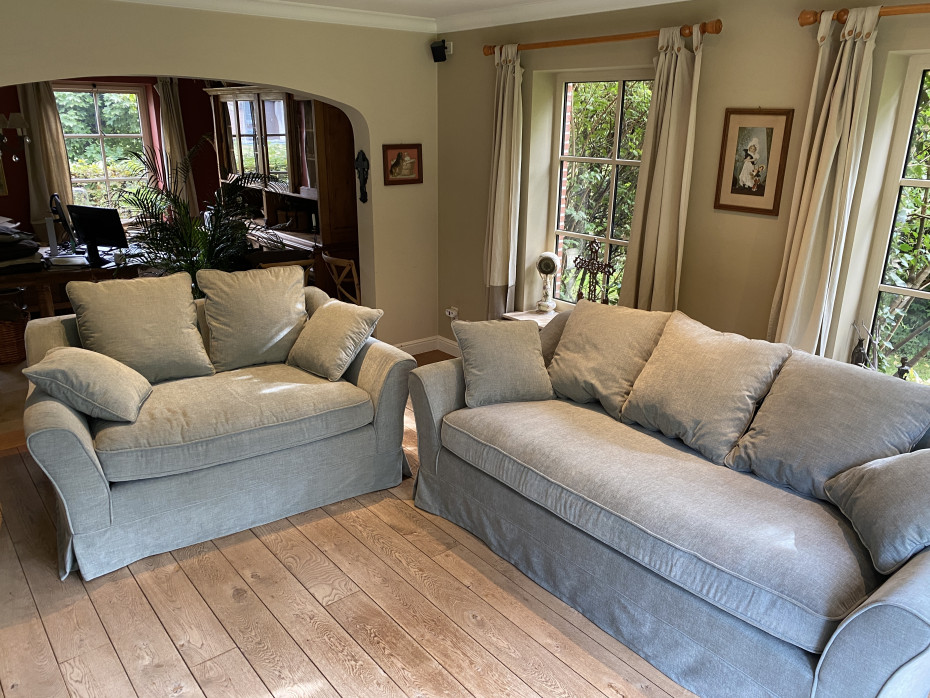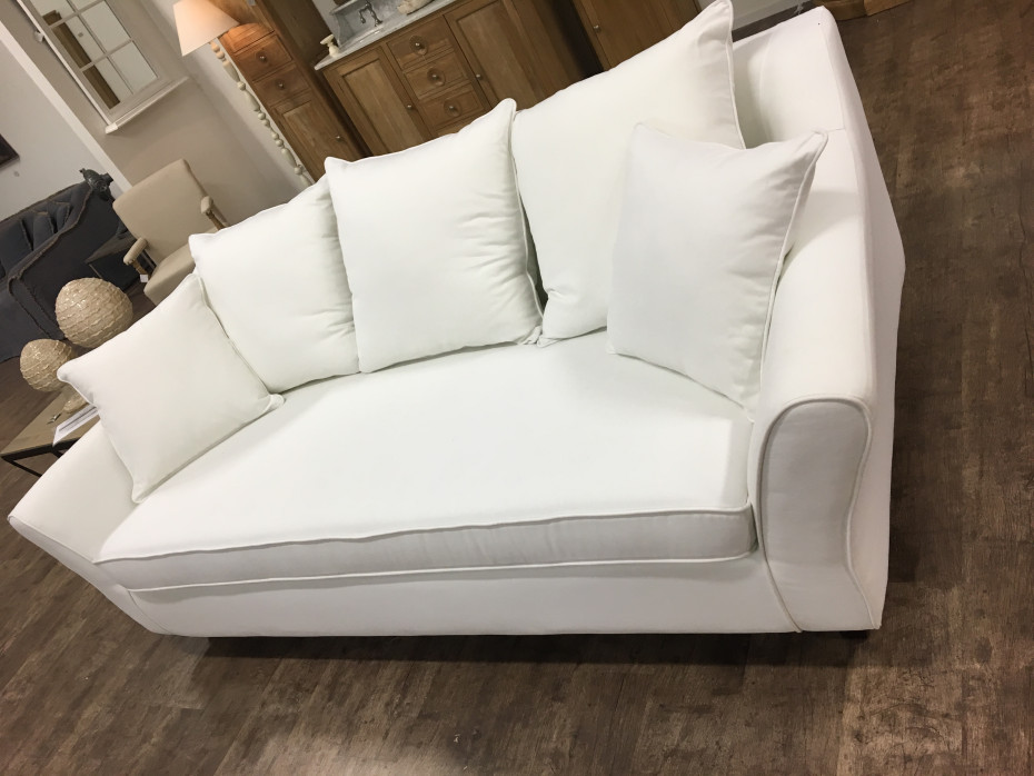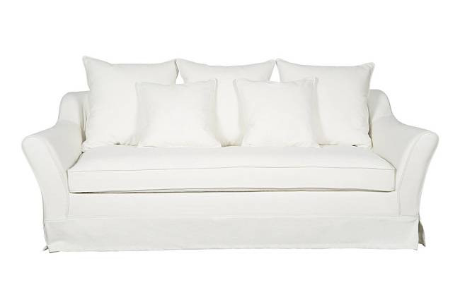 You can choose the rural Emma sofa with fixed or removable seat covers (with extra charge) and with foam filling (included) or foam and feather filling for the seat cushions (extra charge).