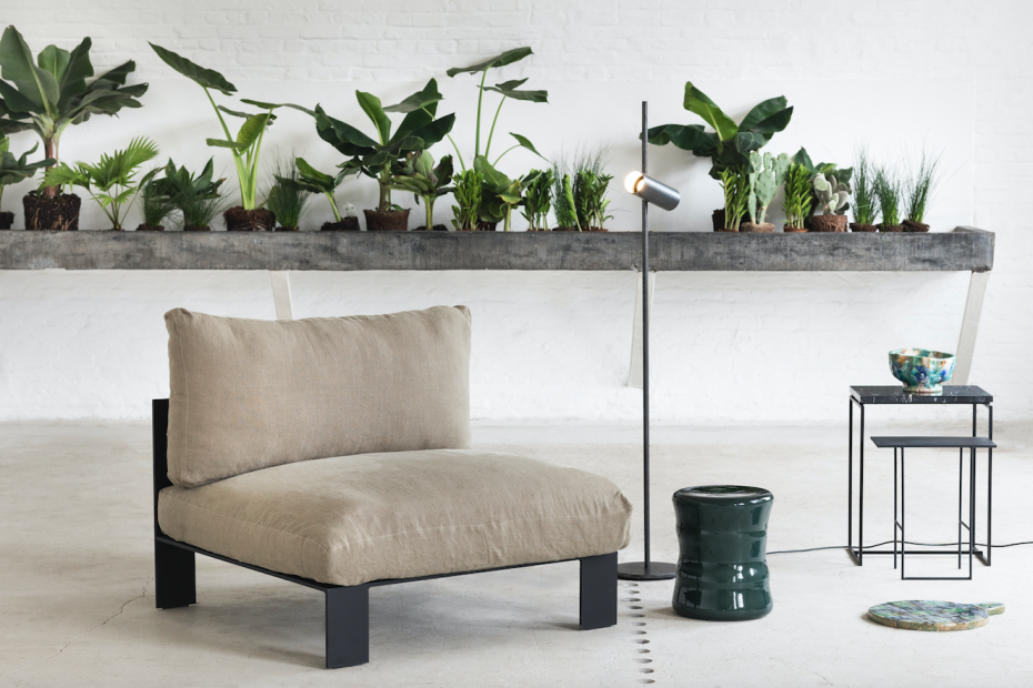 Modular lounge sofa designed by interior stylist Bea Mombaers for Serax. All modules of this modular lounge sofa can be ordered separately in both indoor unit and outdoor unit fabric. The lounge cushions are included per seat.