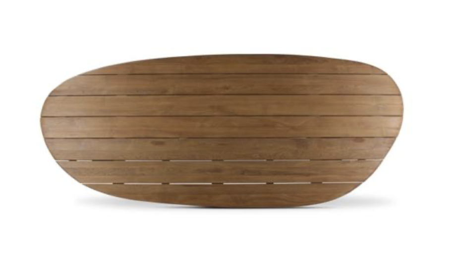The CASTOR table teak natural 300 from Castle Line outdoor has an organically shaped table top made of teak