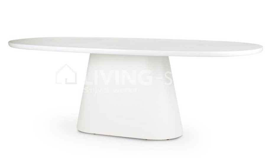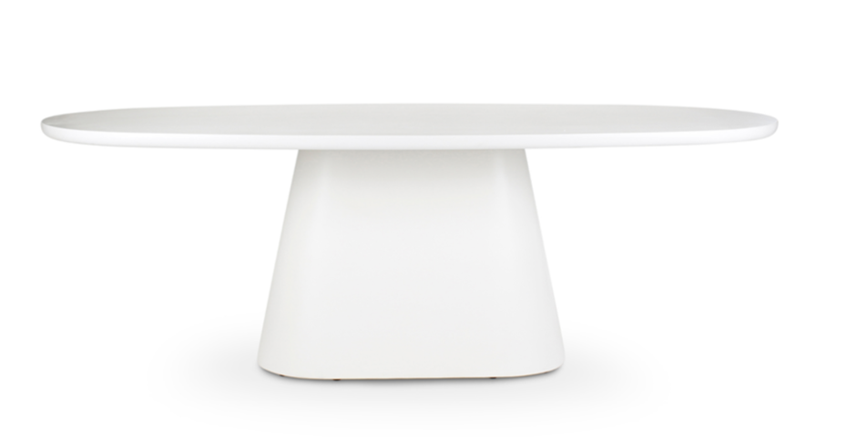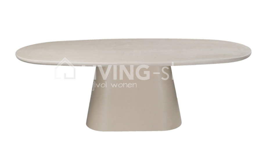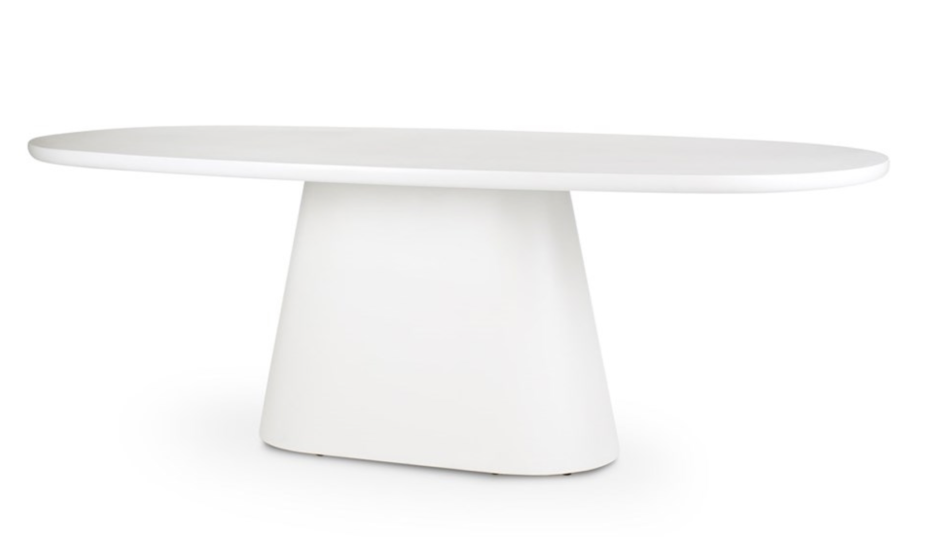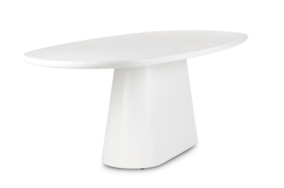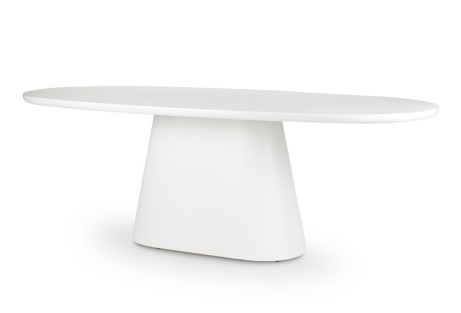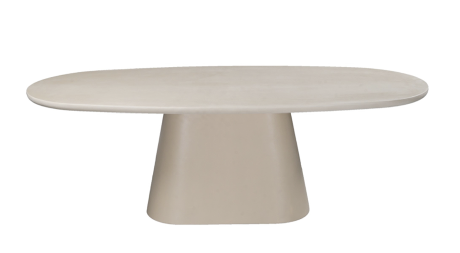 The dining table is made of microcement and is available in two colors: imperial beige or snow white.
