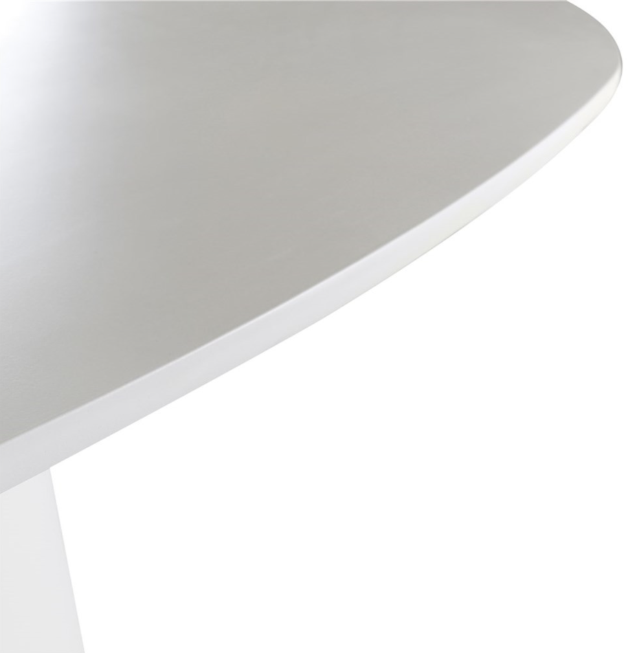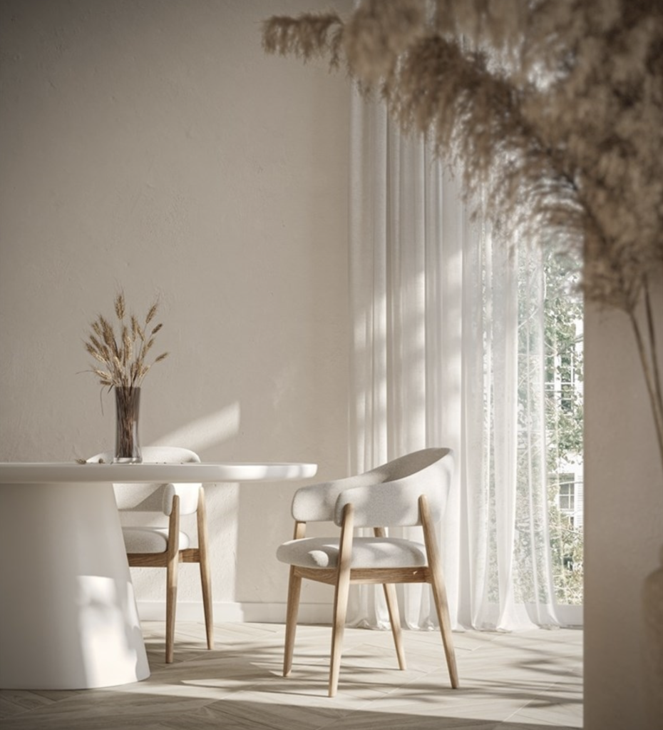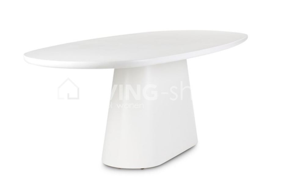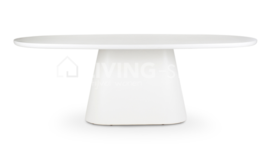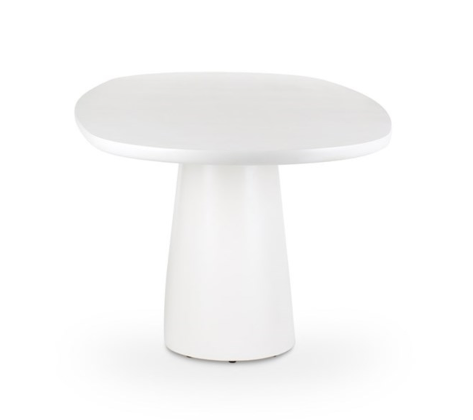 The dining table is made of microcement and is available in two colors: imperial beige or snow white.