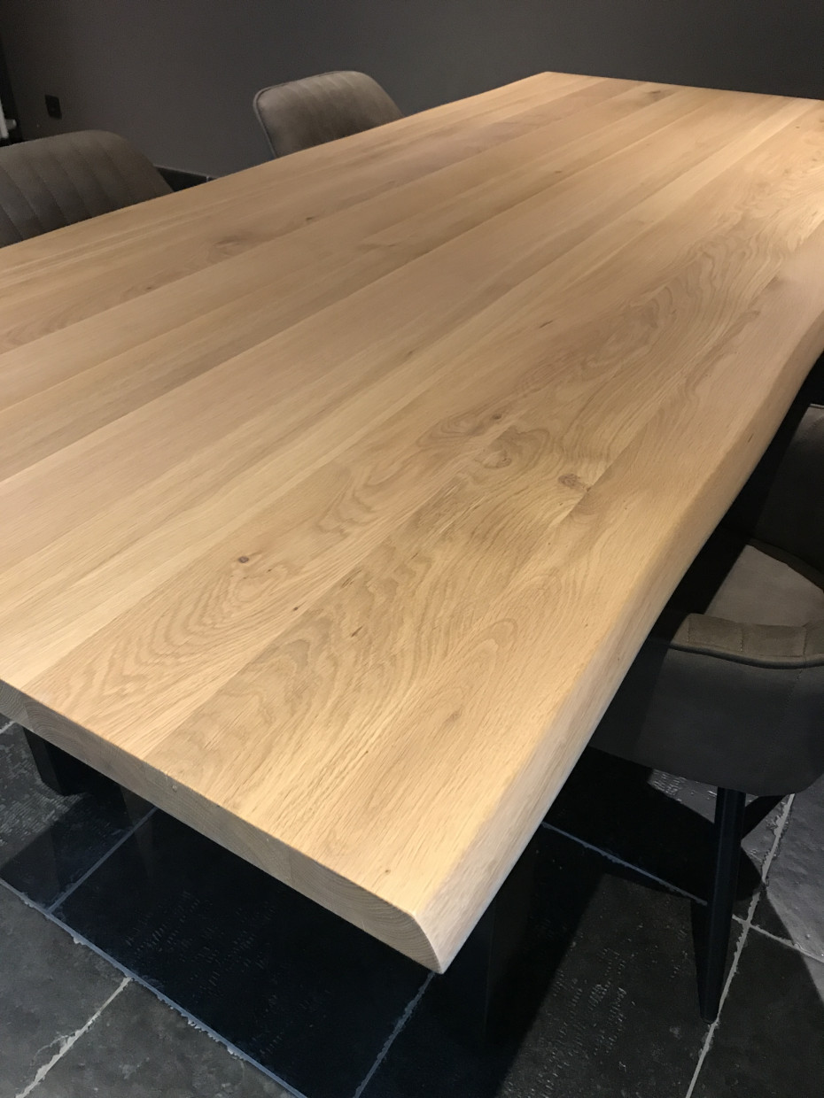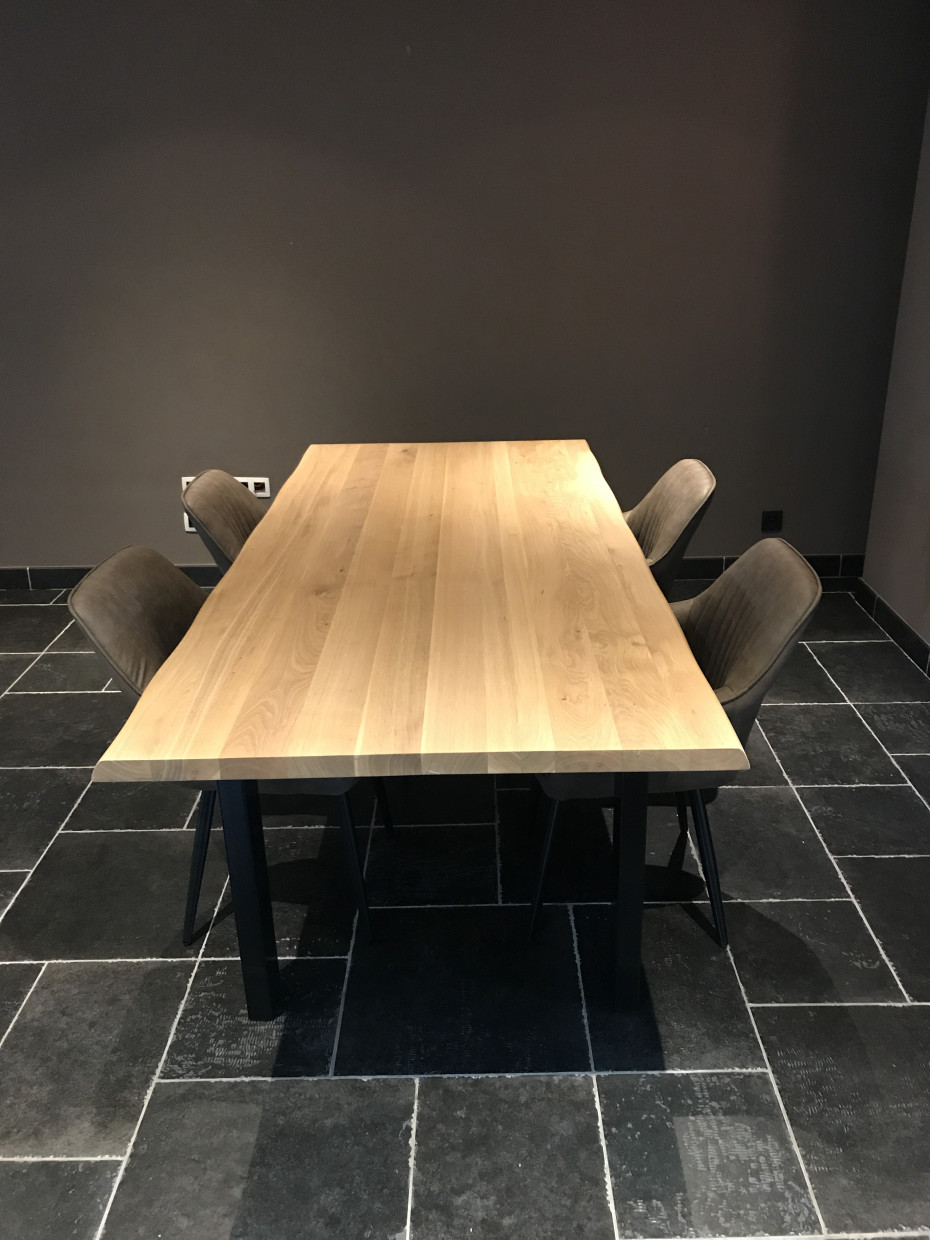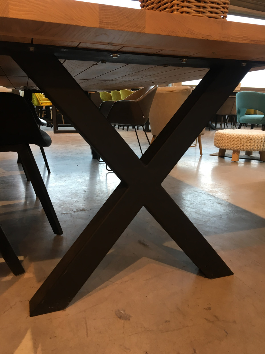 Sturdy oak tree trunk table that you can order in various colors of oak. The oak tree trunk table from Castle Line is a custom made dining table where you can choose the shape of your table legs and always has an oak table top with a thickness of 4 cm. The natural charm of this Trunk oak tree trunk table refers to nature through the use of natural oak while the grain and wood structure remain visible. With its streamlined design, Castle line trunk table is definitely an eye catcher in your interior. Castle line Trunk dining table is uniquely streamlined and the oak varnish protects well against stains. The oak table top of the Trunk dining table has a smooth structure, making it easy to maintain. For your oak tree trunk table you can choose the shape of your table leg: X - U or spider star leg (please state your choice leg shape at the end of your order)