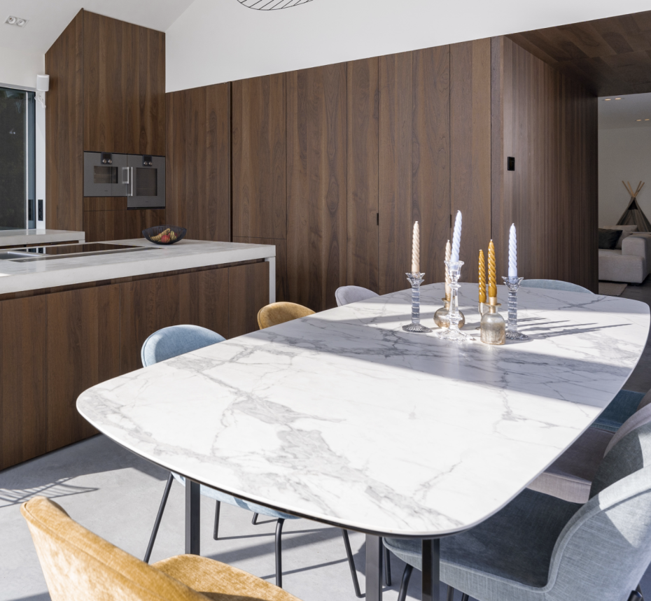 You can compose your oval dining table according to your wishes so that it also fits perfectly into your interior.