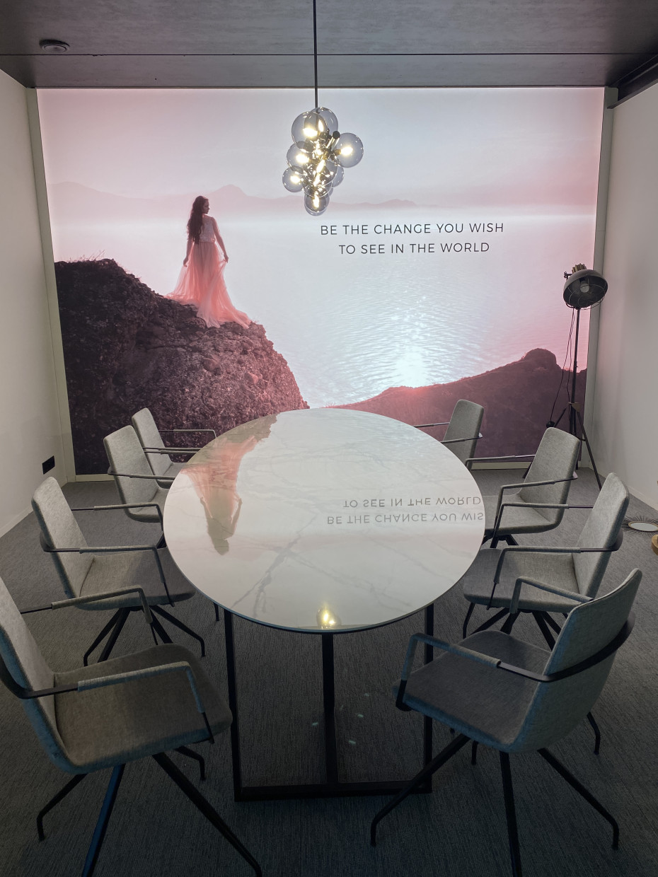 The metal table base can be chosen from 4 metal colours: black, white, gold or anthracite blank metal
