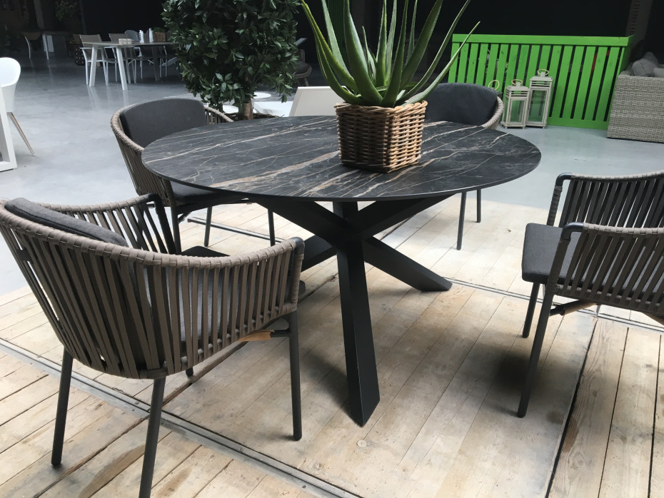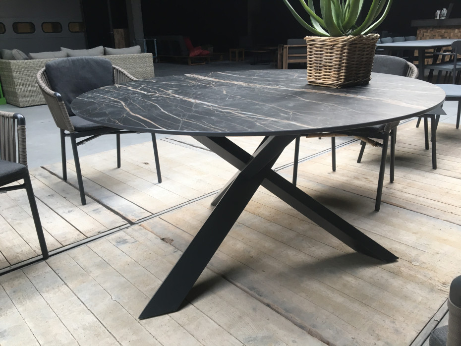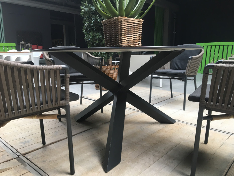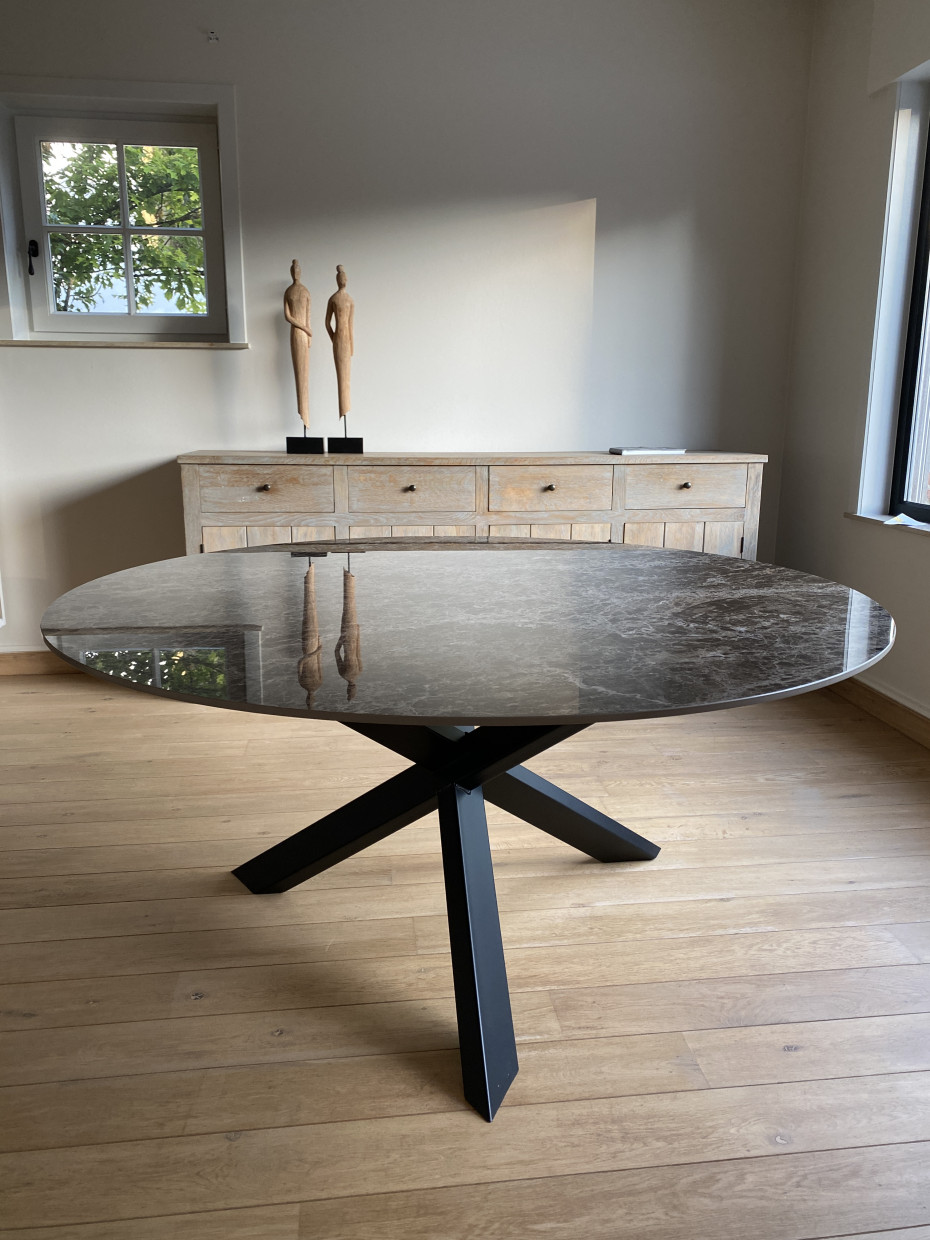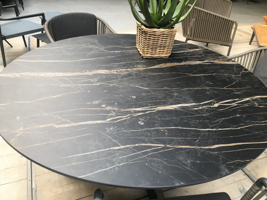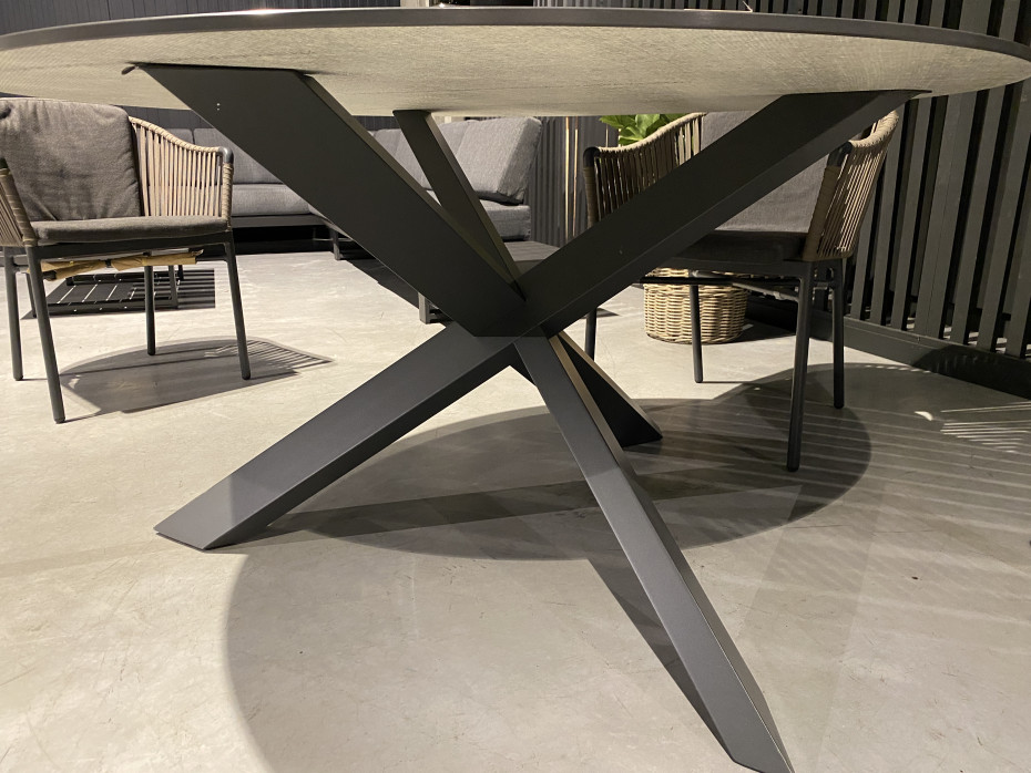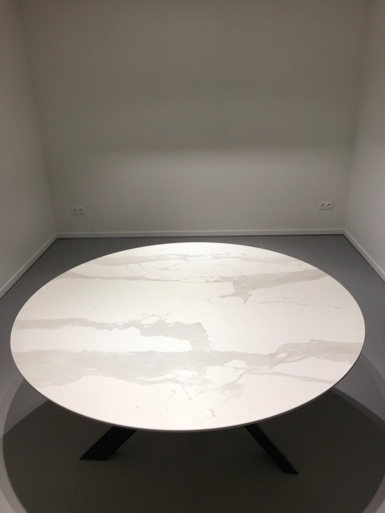 This high quality ceramic dining table is made with a alu metal cross base and can be ordered in various sizes ceramic tops: Ø135 - Ø140 - Ø150 - Ø160cm with a table top height of 74cm.