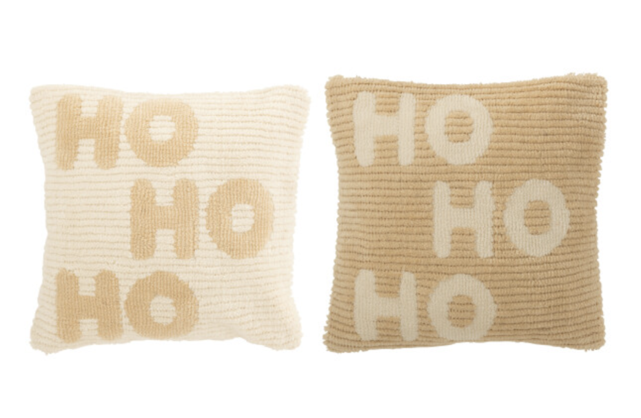 A charming set of two Ho Ho Ho cushions with a concealed zipper on the back.