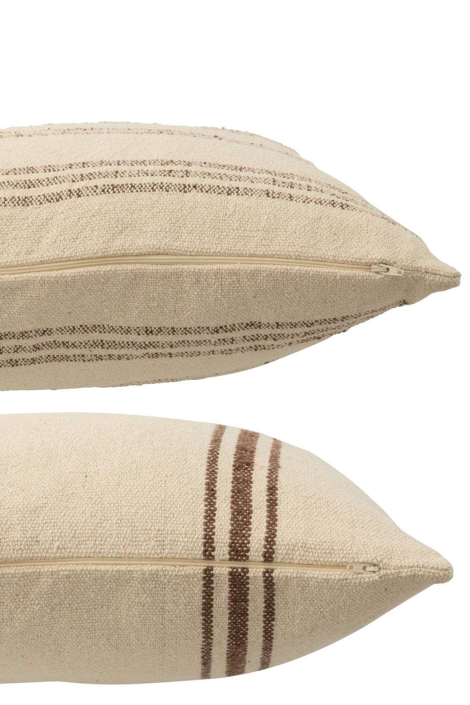 These cushions with stripes from J-line are made of recycled Cotton / linen / polyester, including filling and zipper
