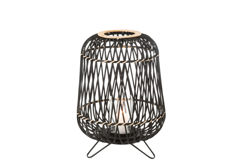 Round J-line lantern in bamboo, rattan, rattan, with glass to place a candle. Choose these lanterns as the perfect frame for your patio atmosphere.