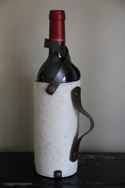 Scapa Home leather wine bottle holder, in cow version white/ivory, with pression buttons for fastening the leather and sturdy handle. Beautiful Scapa Home bottle holders & home accessories, for those who like a glass of wine, this double enjoyment! Create the right atmosphere for a glass of wine to pour ...