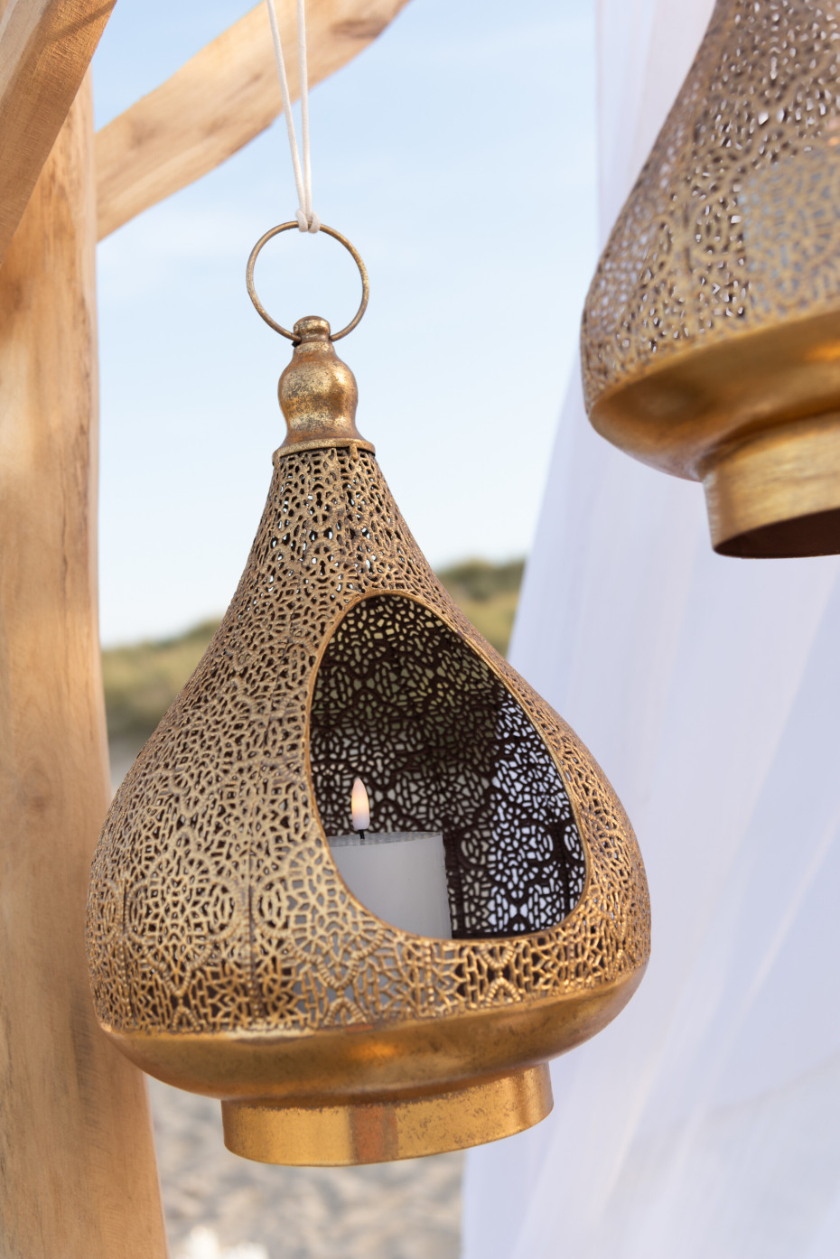 J-Line lanterns in oriental metal and gold, decorations and home accessories from the Belgian brand J-Line pleasure of living.