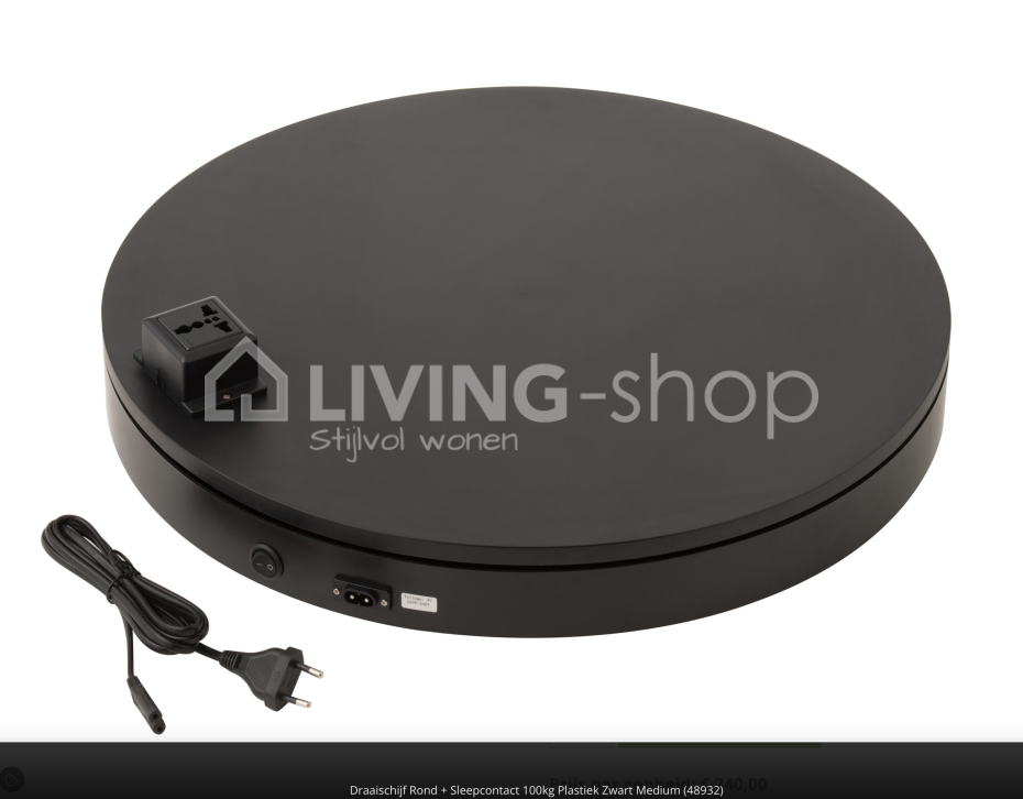 Electric Turntable base dimensions: 50x50xH7cm; Weight: 5.5kg