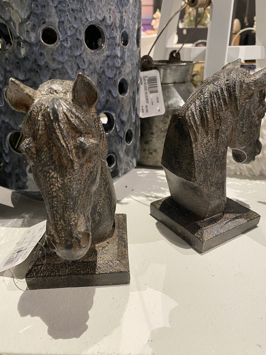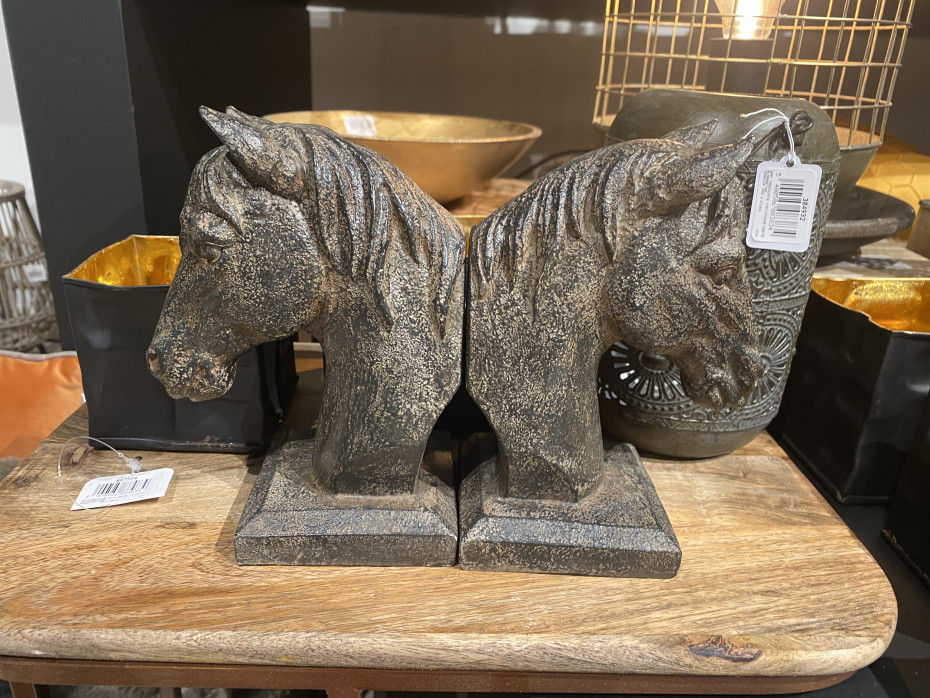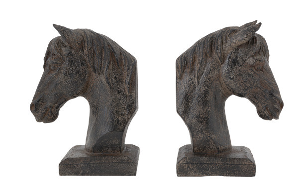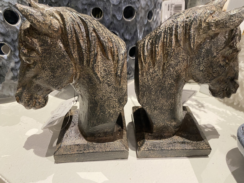 Set 2 bookends statues horse head on stand
