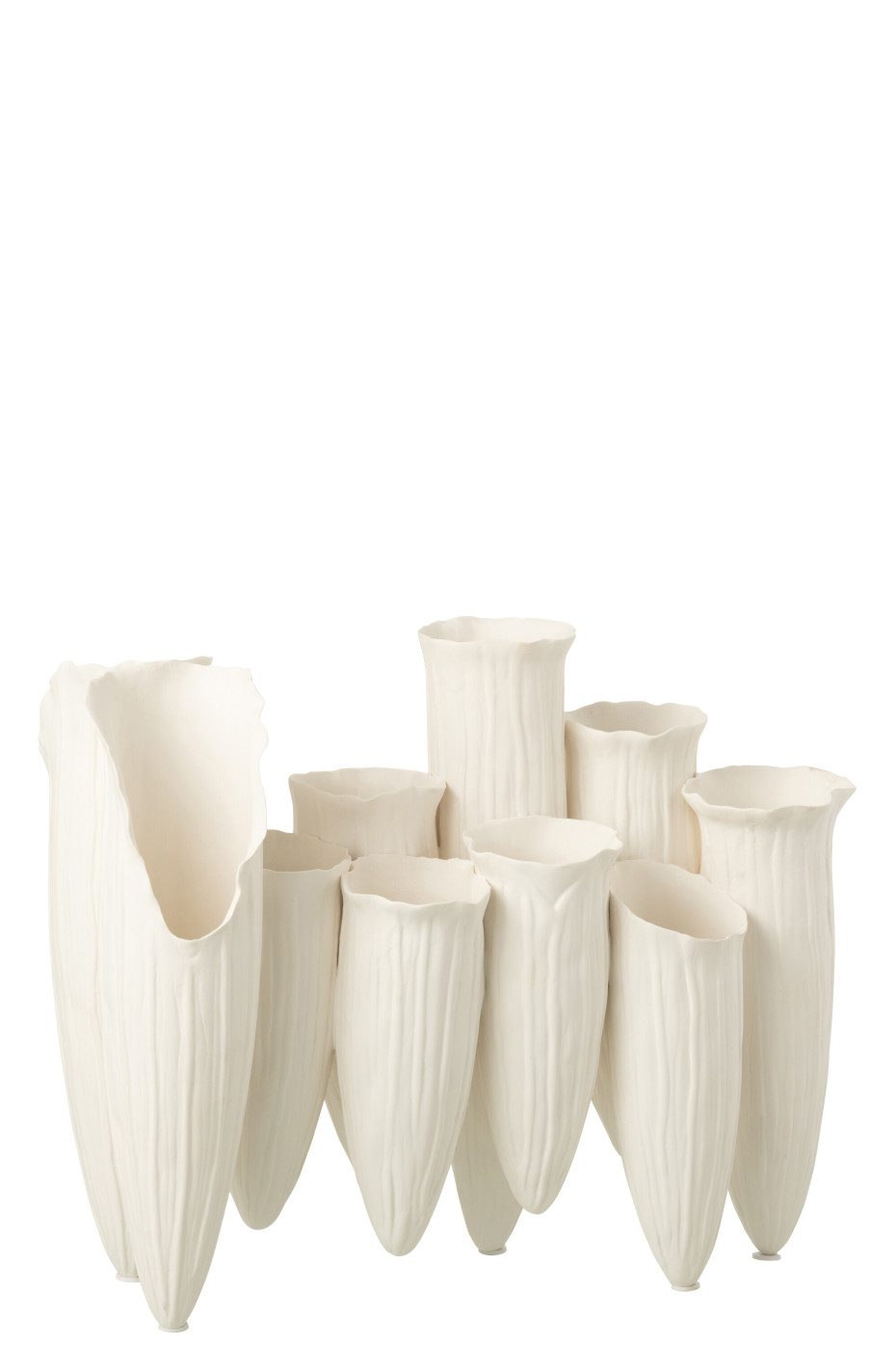 Beautiful earthenware Soliflore vases composed of lined cylindrical tubes in various sizes and natural shapes