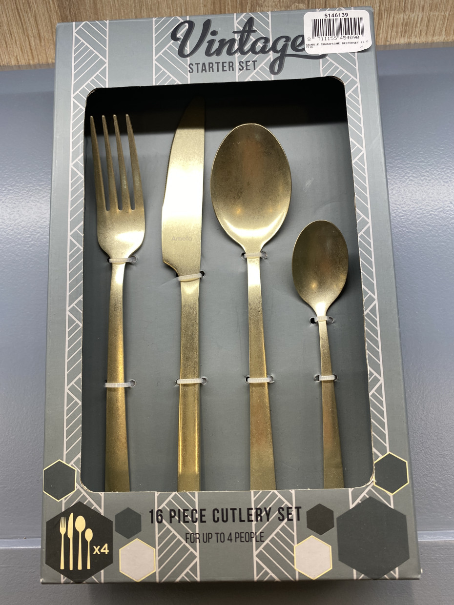 The cutlery set consists of 4 knives, 4 forks, 4 teaspoon and 4
