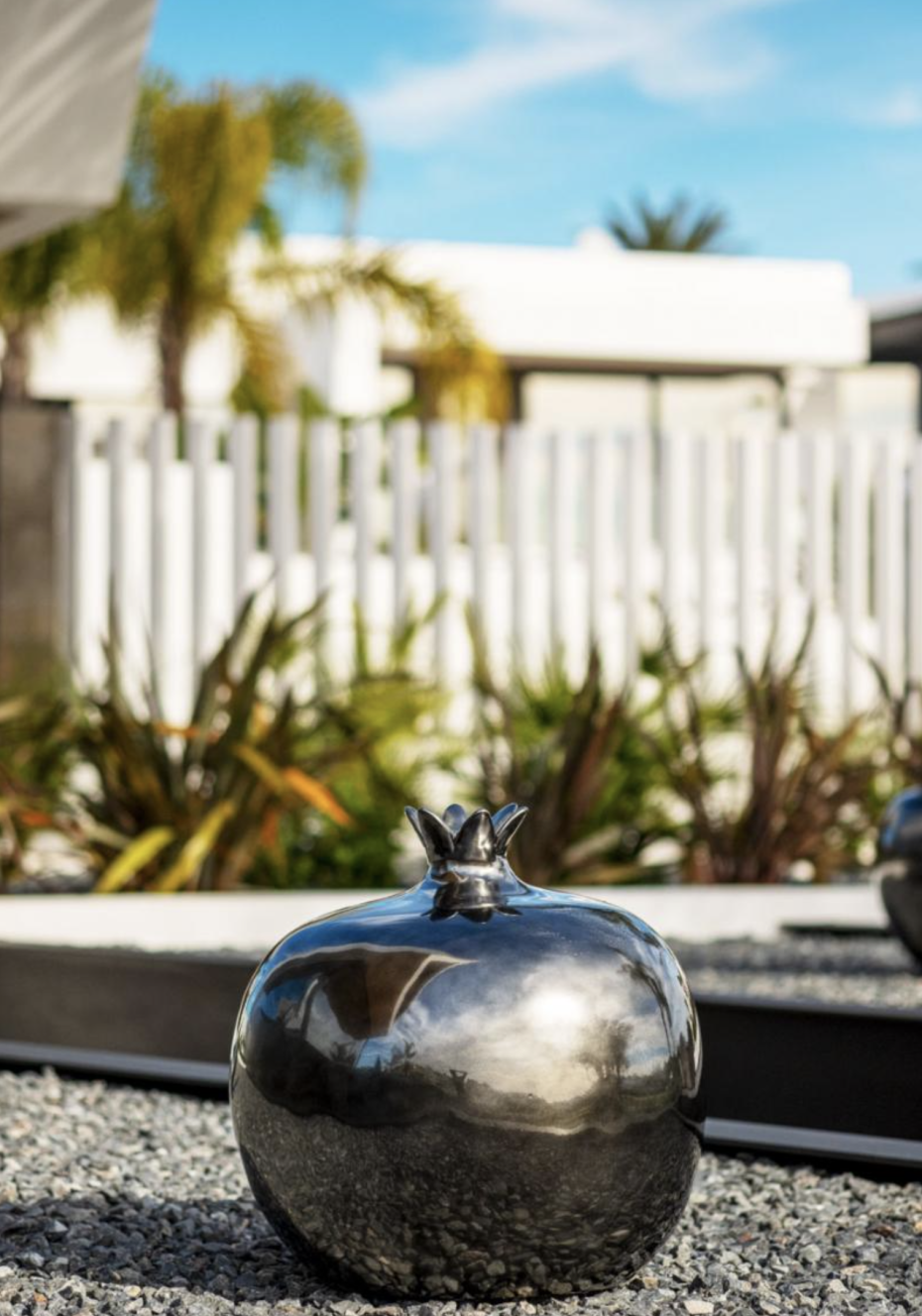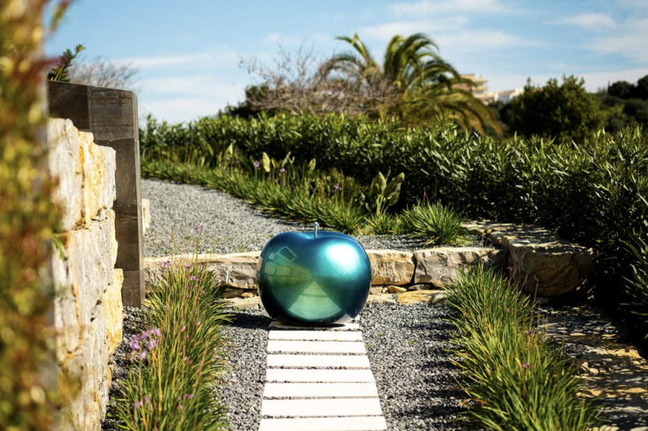 These metallic apples and other fruit sculptures are a design by artist Lisa Pappon for Bull&Stein