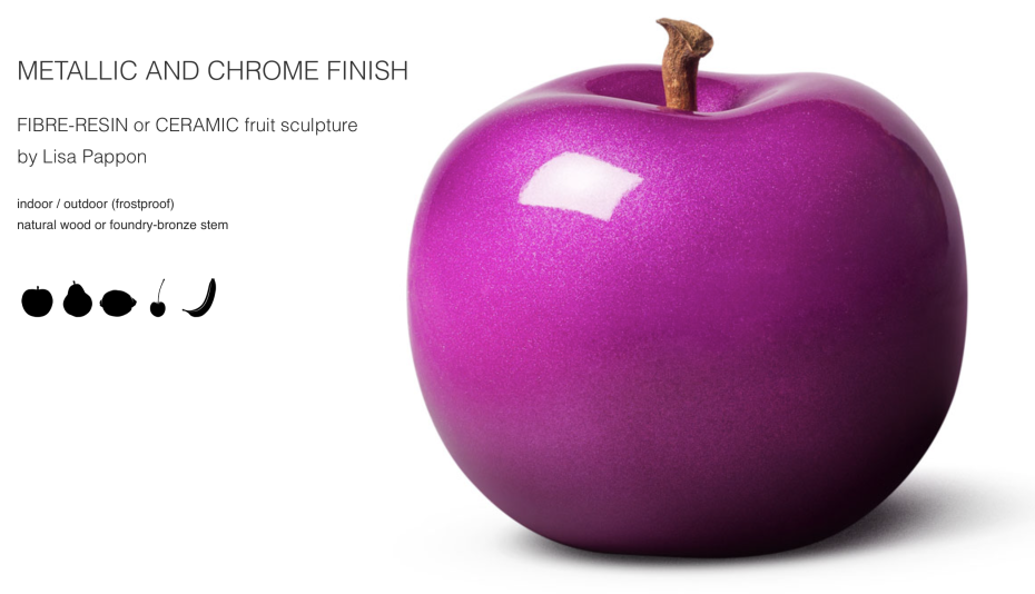 You can also order these INDOOR & OUTDOOR frostproof fibre-resin metallic versions in other fruits like banana, pear, cherry, lime and pomegranate, prices on request