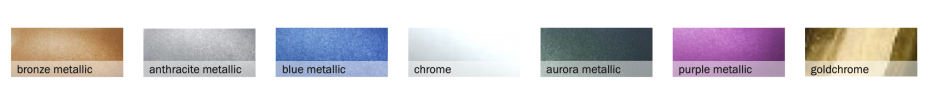 anthracite metallic - aurora - blue metallic - bronze metallic - chrome - gold chrome - purple metallic
