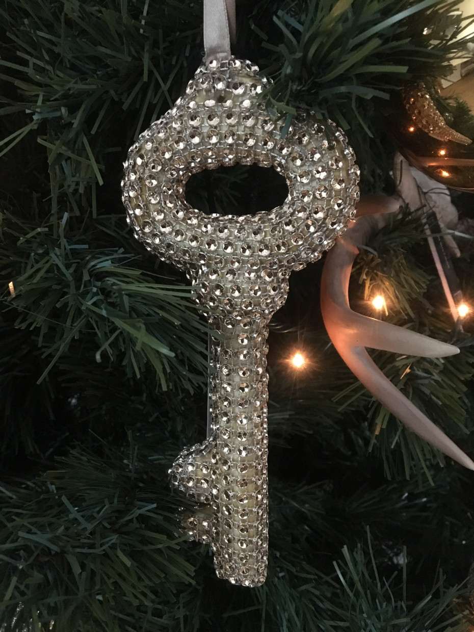 Decorative key finished with rhinestones in champagne color