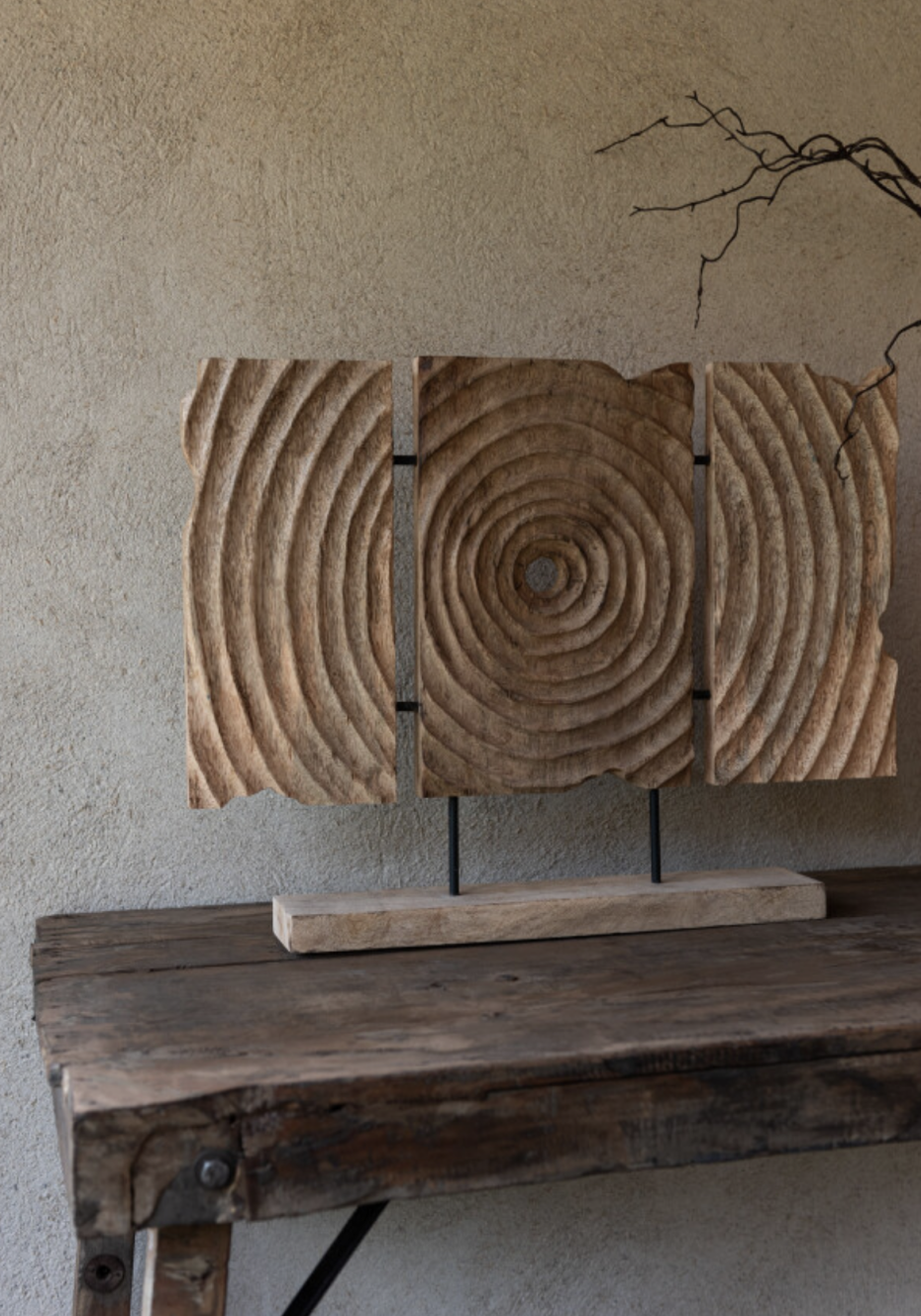 Ethnic Triptych Sculpture in Mango Wood by J-Line