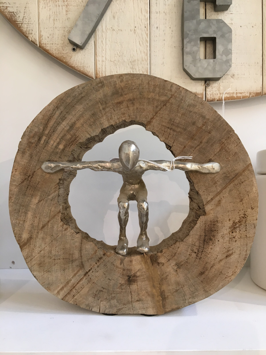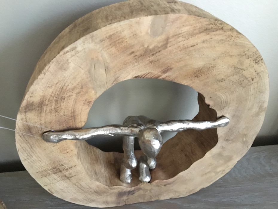 Sculpture figure jumping in wooden disk J-Line