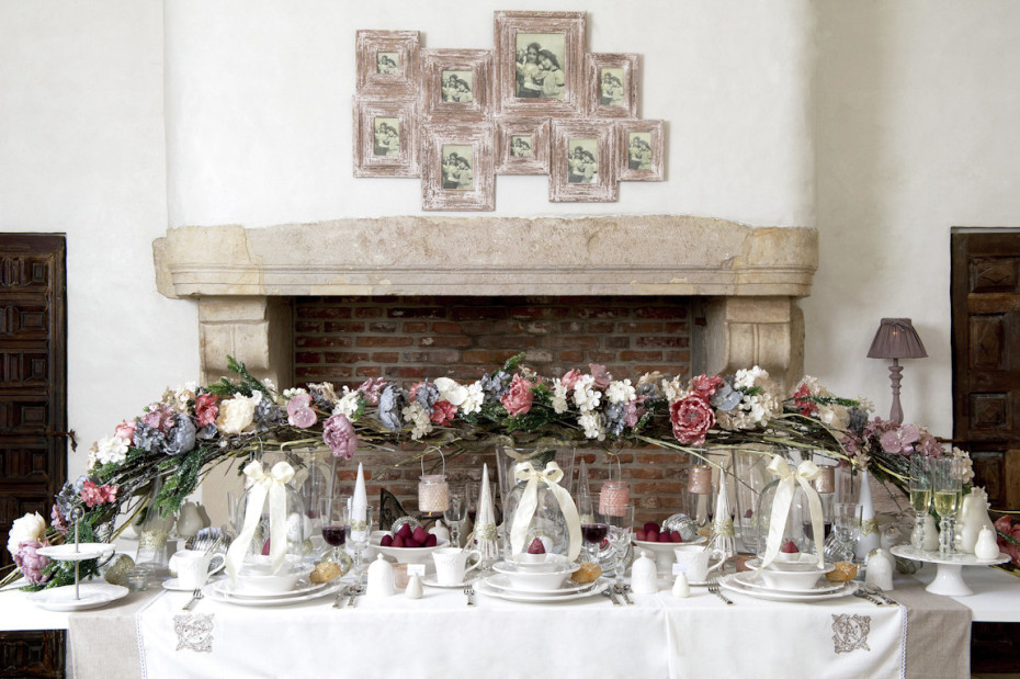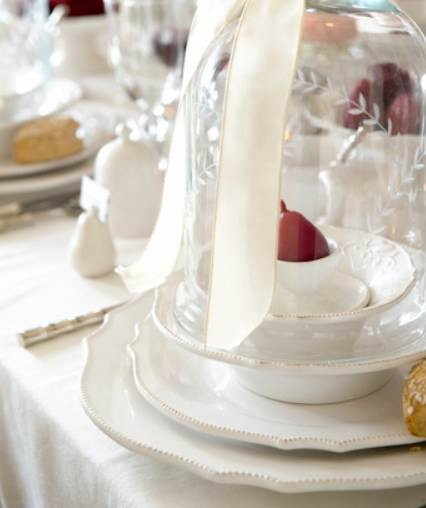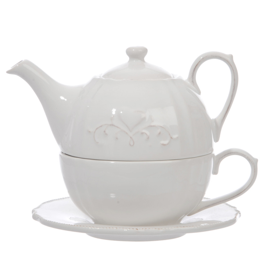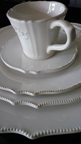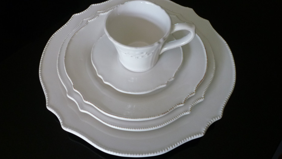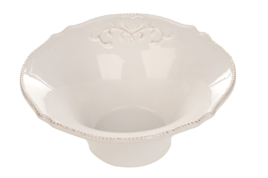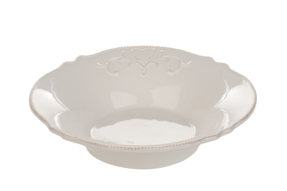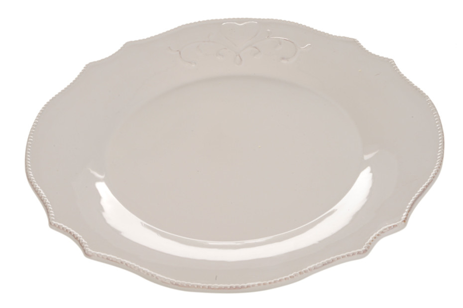 Country style romantic dinner set made of ceramic with beautiful plate rim and heart detail in relief
