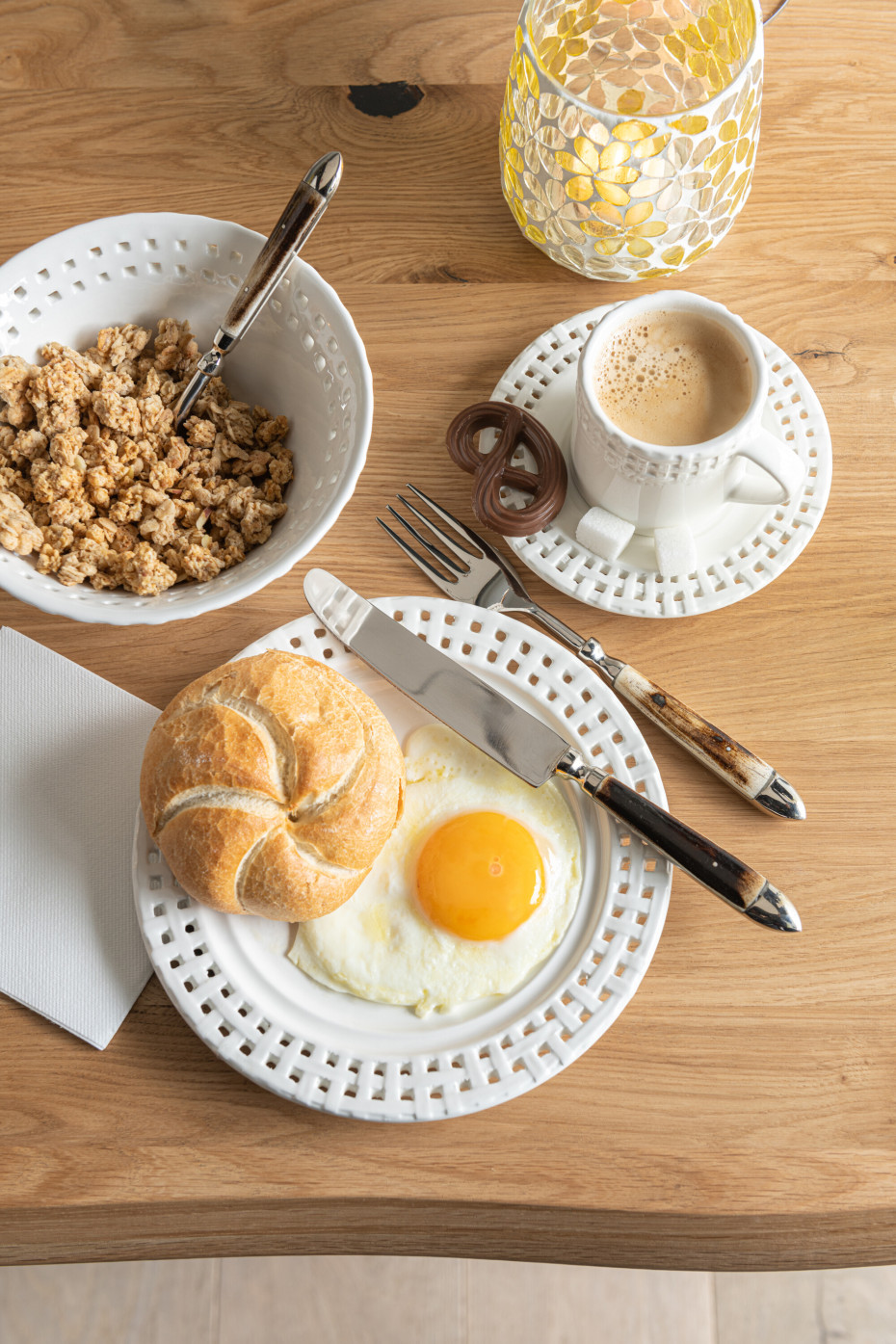 The country style dishes are made of ceramics, Micro and Dishwasher-safe. Crockery by the brand J Line