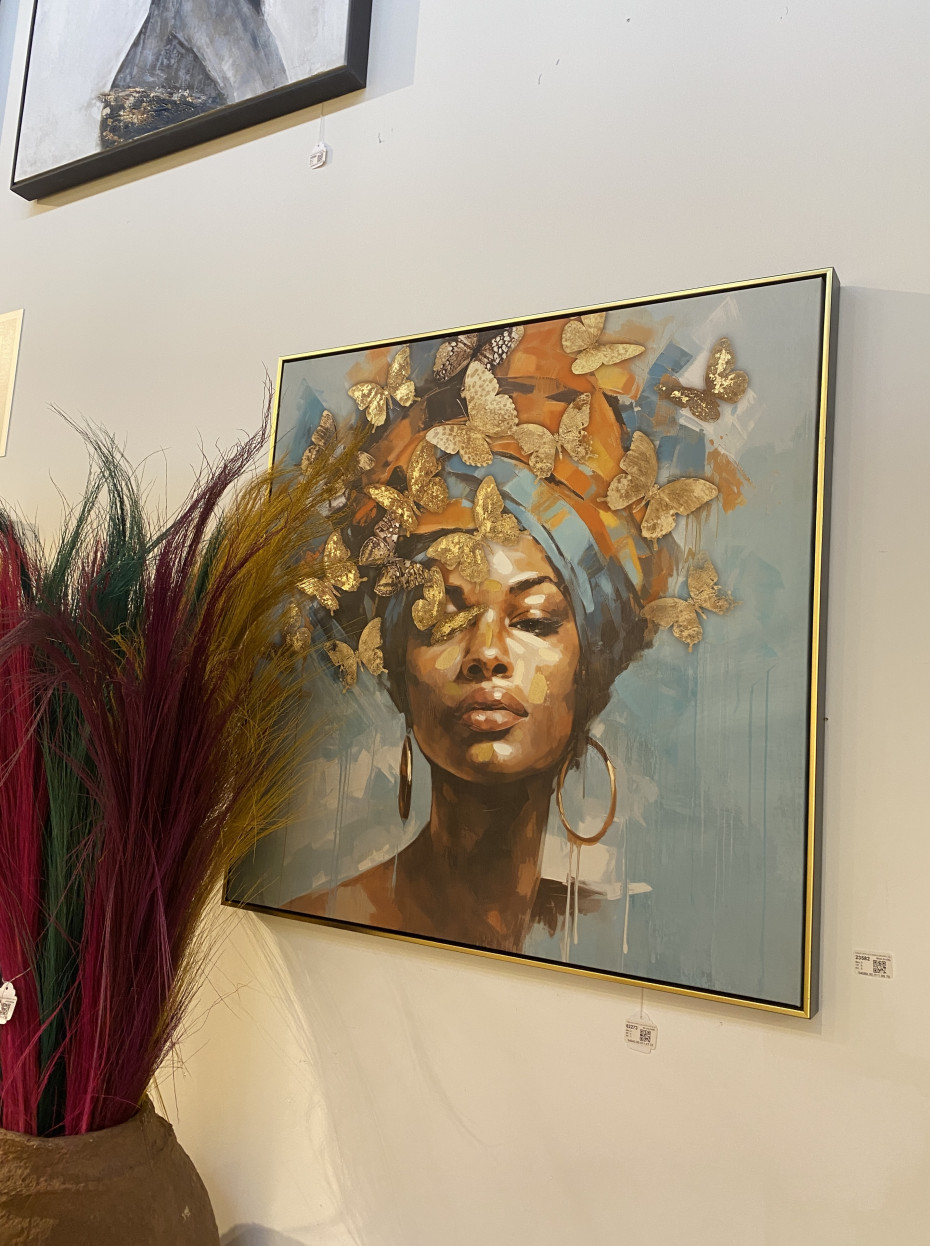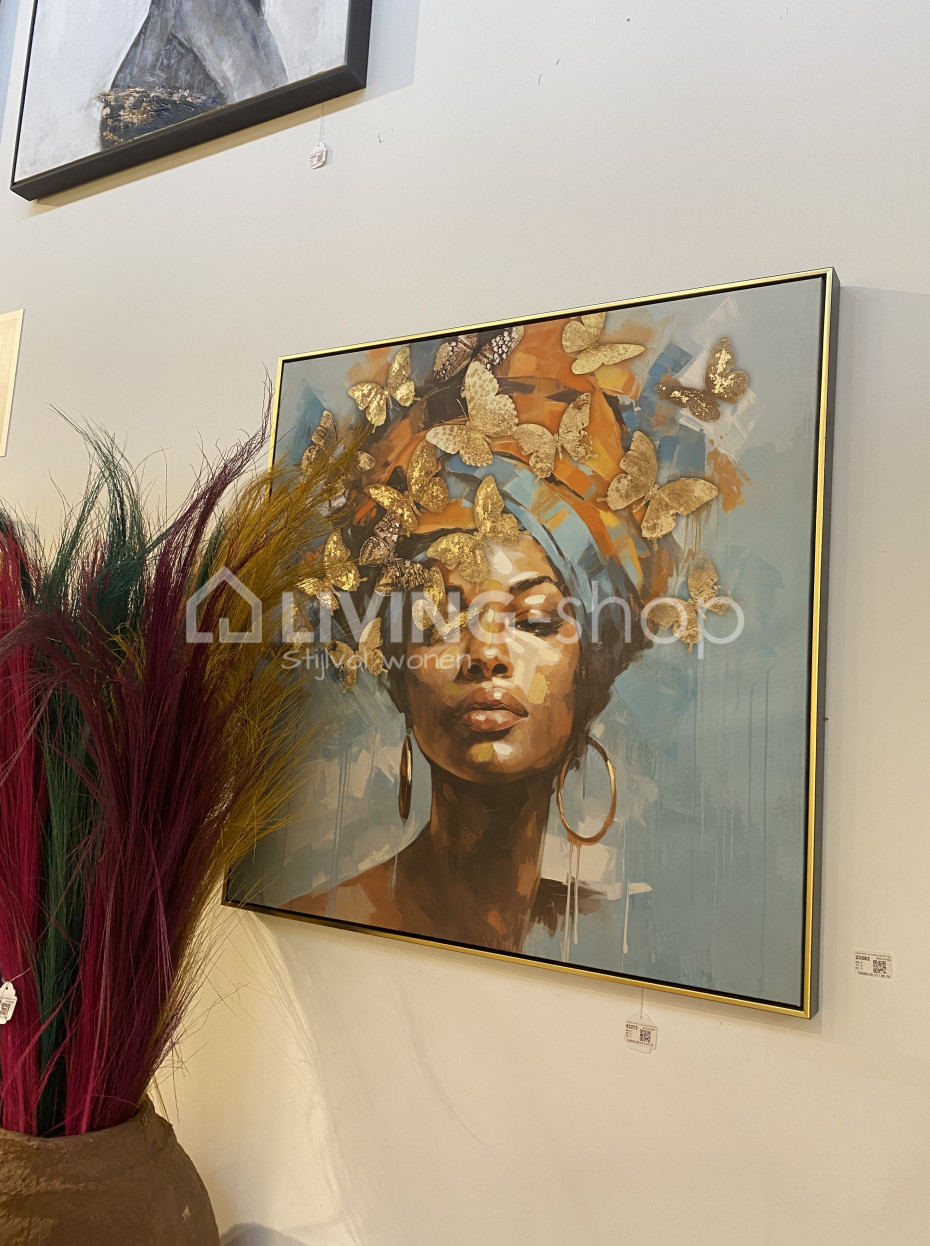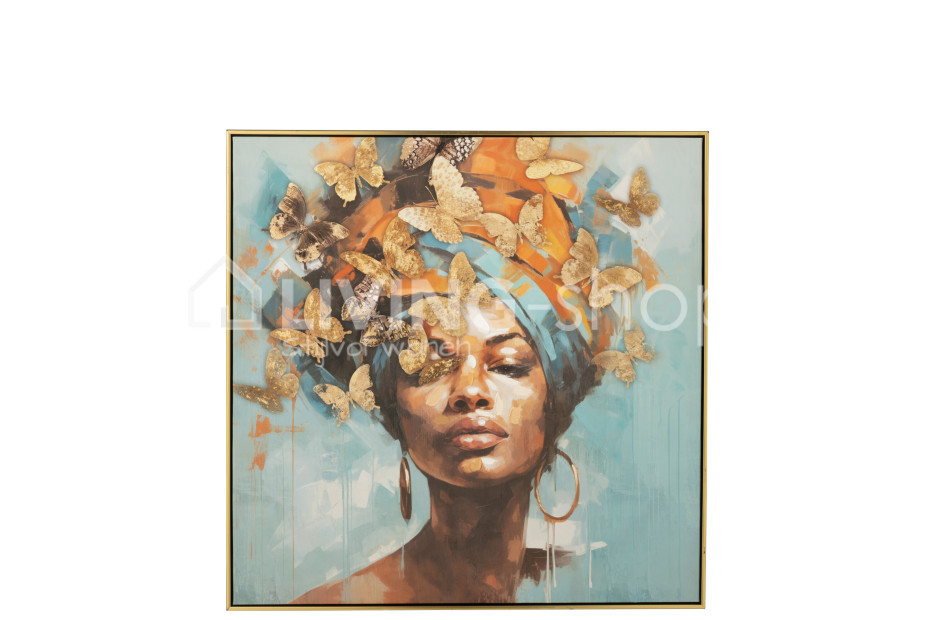 J-Line framed art painting of a lady with butterflies, J-Line wall decoration, canvas and wood.