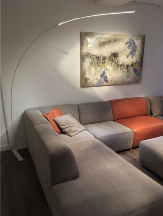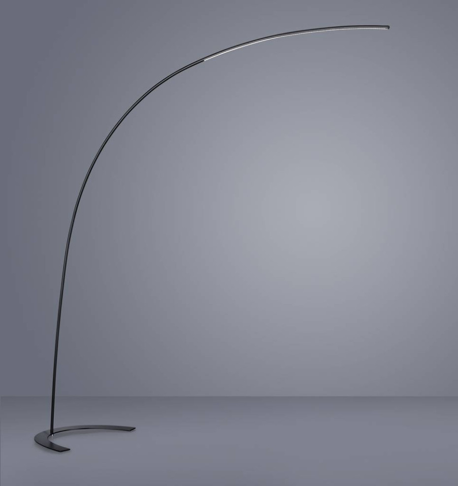 This modern arc lamp is 220 cm high and has a reach of 185 cm, so it is often placed near the seating area as extra light. The Led strip is 100 cm
