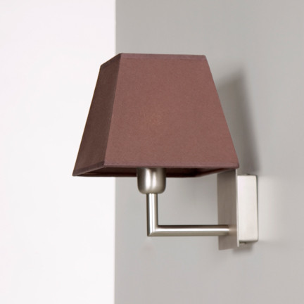 Square lampshades for wall lamps, available in different colors of cotton (such as the round suite of lamp shades). The square lamp shades are slightly conical in shape, with hanging system for wall lamps and / or table lamps.