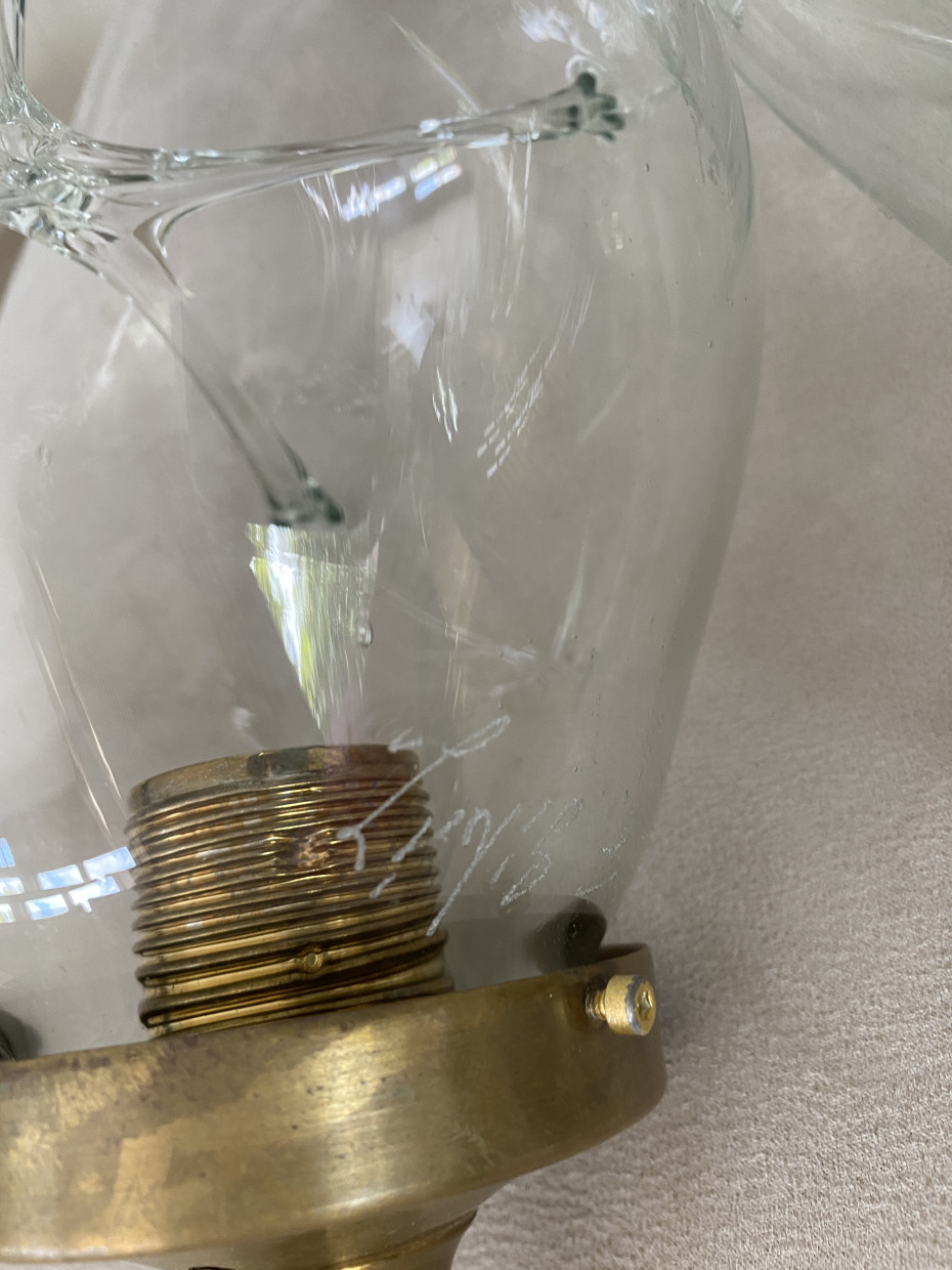 Artisanal hand-blown hanging lamps, signed by the artist.