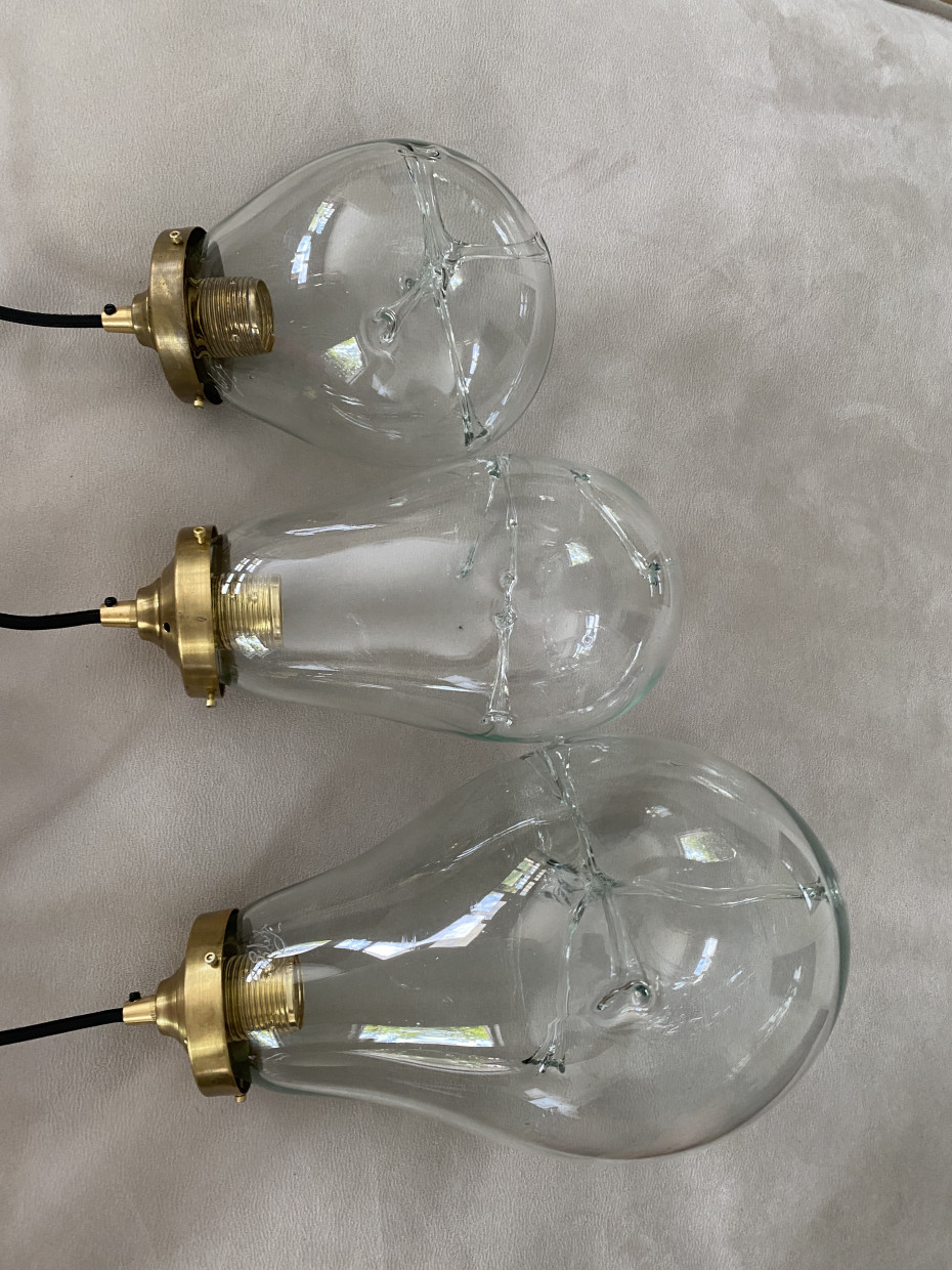 All our artisanal pendant lights are completely unique and hand-crafted, mouth-blown by professional glass blowers. It is the human aspect of manufacturing these artworks that makes these pendant lights unique.