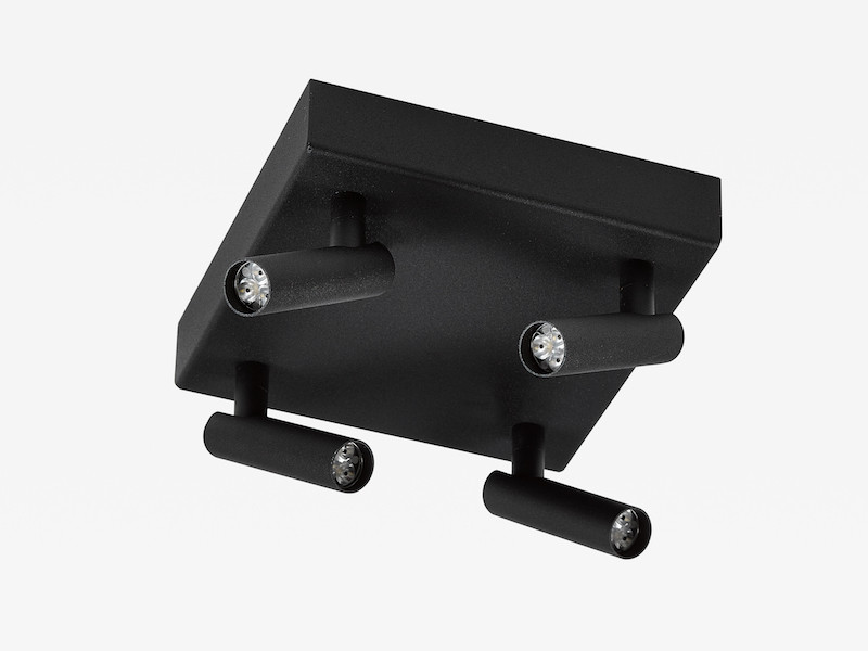Square ceiling lamp black steel with 4 spots