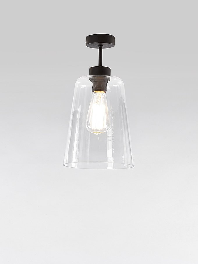 Retro loft bronze ceiling lamp available with clear glass or fumé gray glass lampshade,