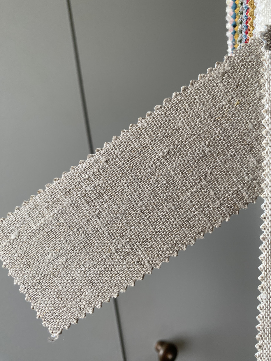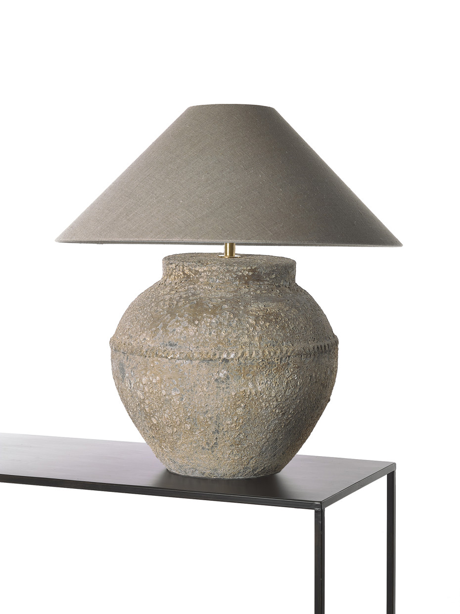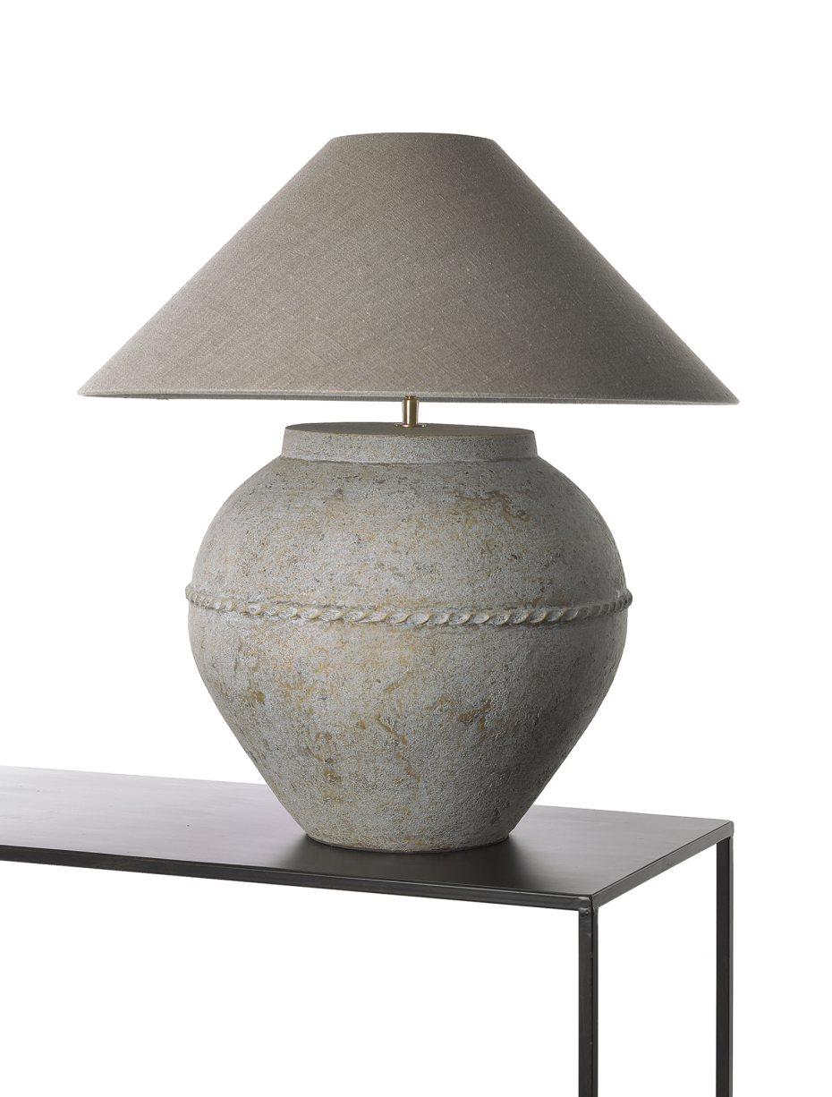Stone lamp with round linen lampshade