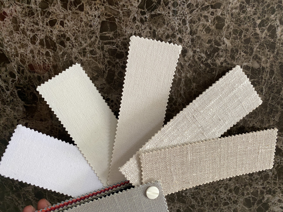 The stone lamps have a round cotton / linen lampshade