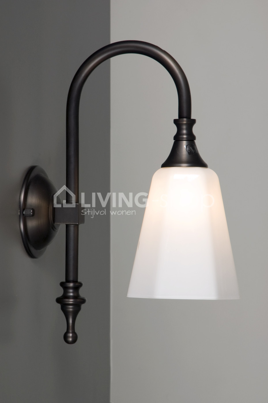This stunning collection of wall sconce bathroom lights, thanks to the milky glass, for an even and diffuse light. This lighting is therefore very suitable to use above or at the side of bathroom mirrors. The narrow glass lampshades hide the underlying source of light so well, that glare is almost impossible, but will still spread an even light on faces and the surroundings. The style of this Bainwat collection has a somewhat English country touch and the most commonly used chrome, combines best with the chrome often found in bad fixtures