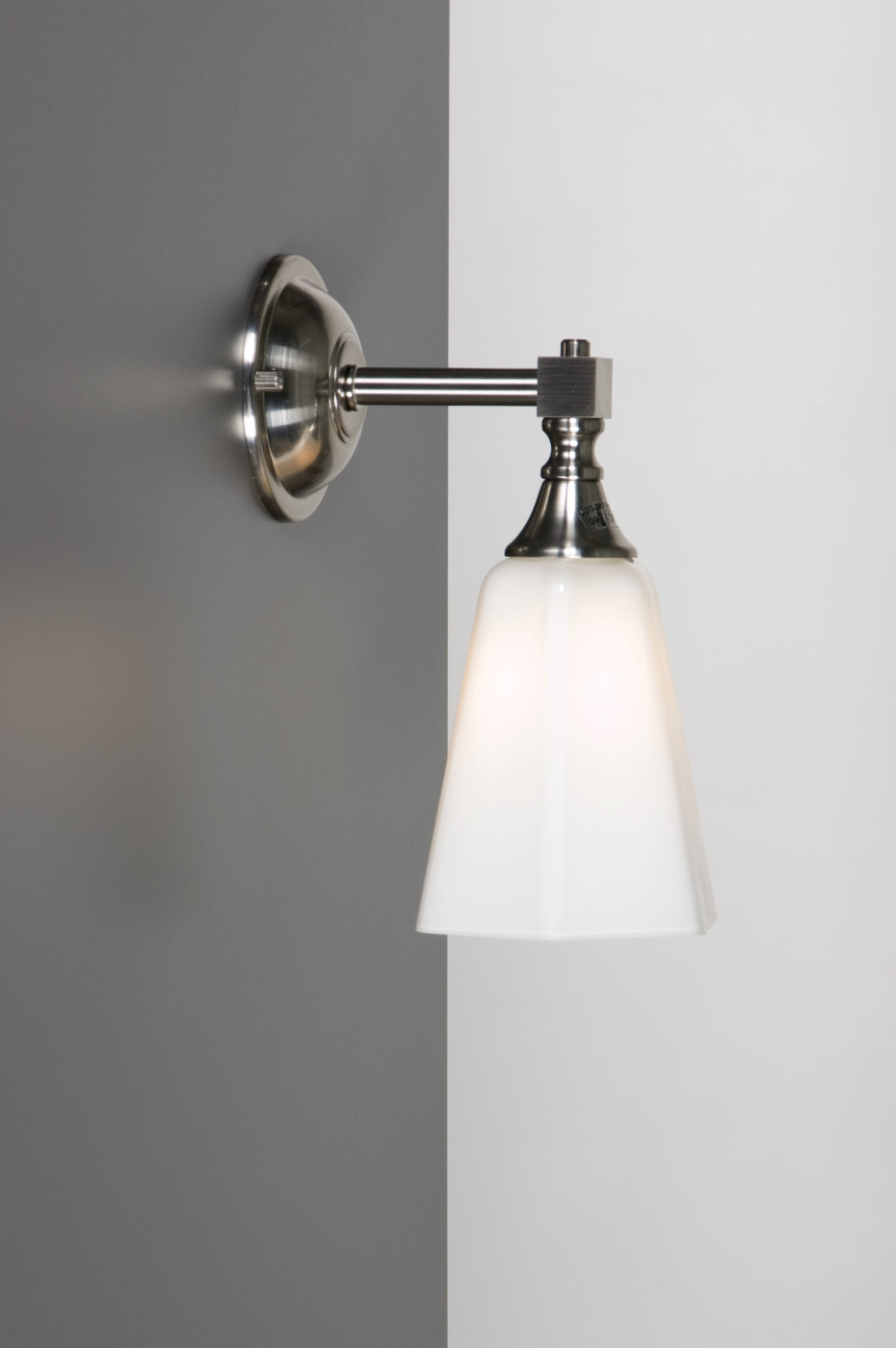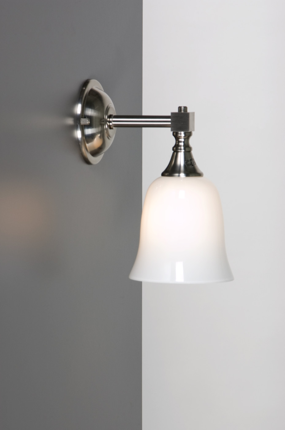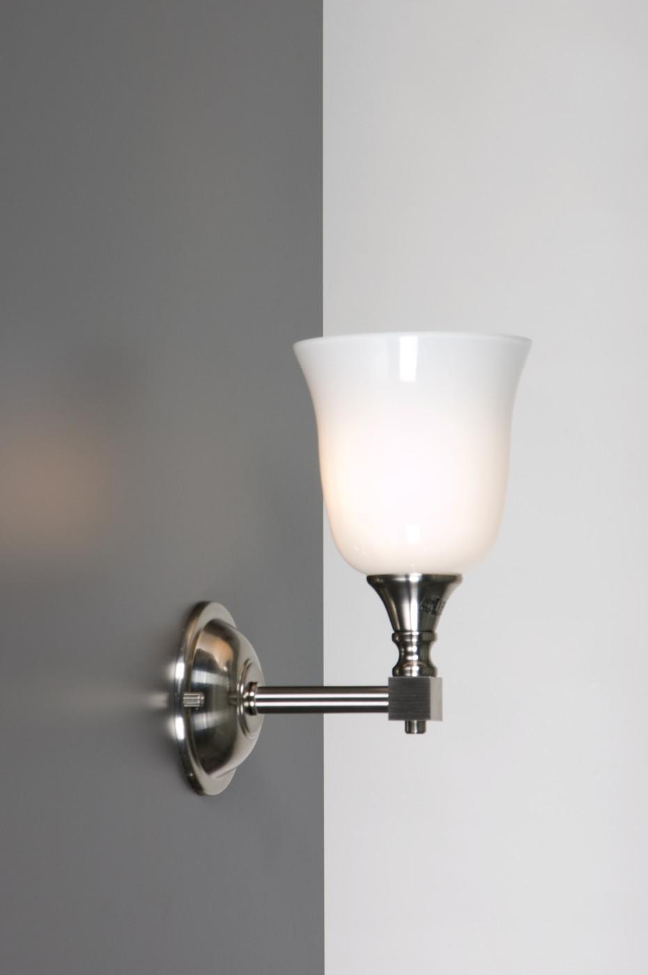 This stunning collection of country bathroom lights, projects, thanks to the milky glass, for an even and diffuse light. This lighting is therefore very suitable to use above or at the side of mirrors. The narrow glass lampshades hide the underlying source of light so well, that glare is almost impossible, but will still spread an even light on faces and the surroundings. The style of this Bainwat collection has a somewhat English country touch and the most commonly used chrome, combines best with the chrome often found in bad fixtures