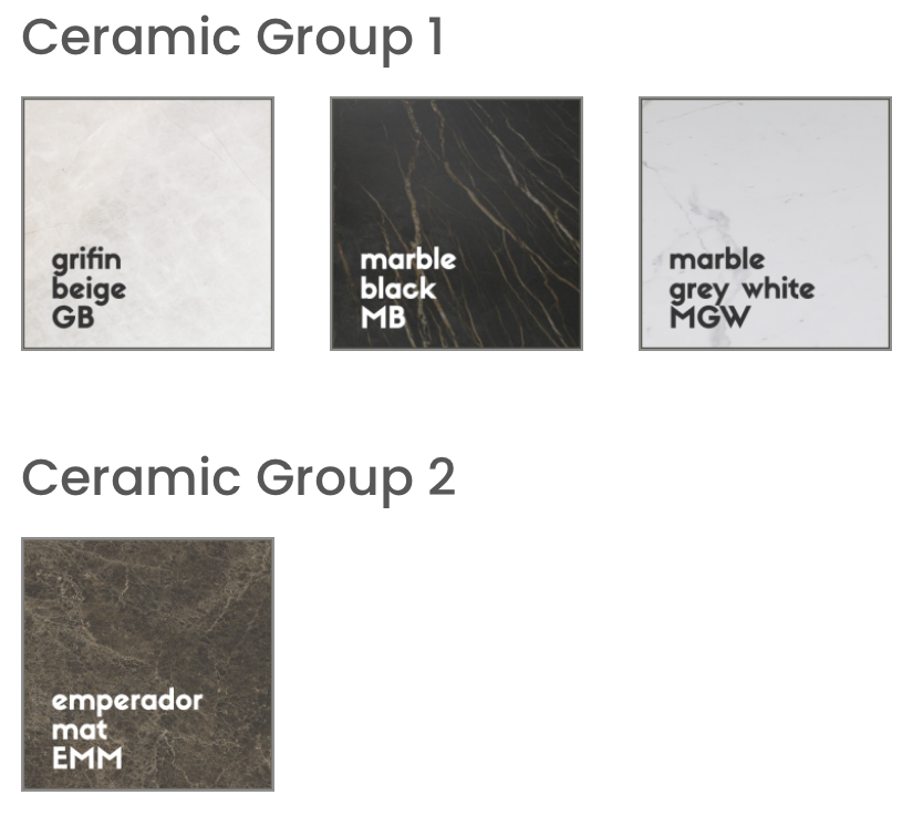 The marble look ceramic has a tabletop thickness of 12mmYou can choose from 3 variants ceramic colors marble imitation :