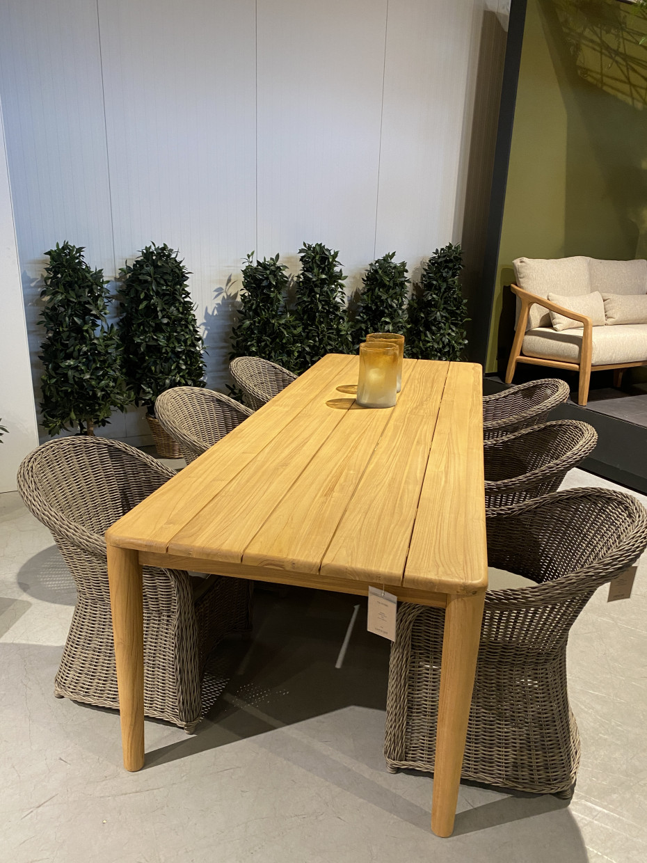 Robust teak garden table in full recycled teak measures L300x100xH76CM for 8 armchairs