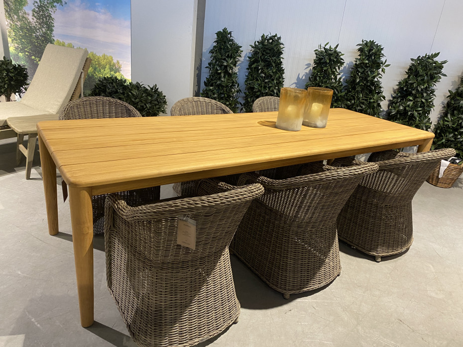 The garden table ANAIS table 280 teak grey is 280cm long x W100 x H78cm, table top thickness 3cm, height under the table 75cm