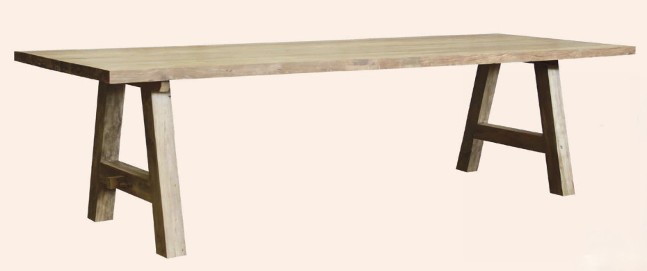 Teak dining table A-legs with teak table top 5 cm with 3 slats
